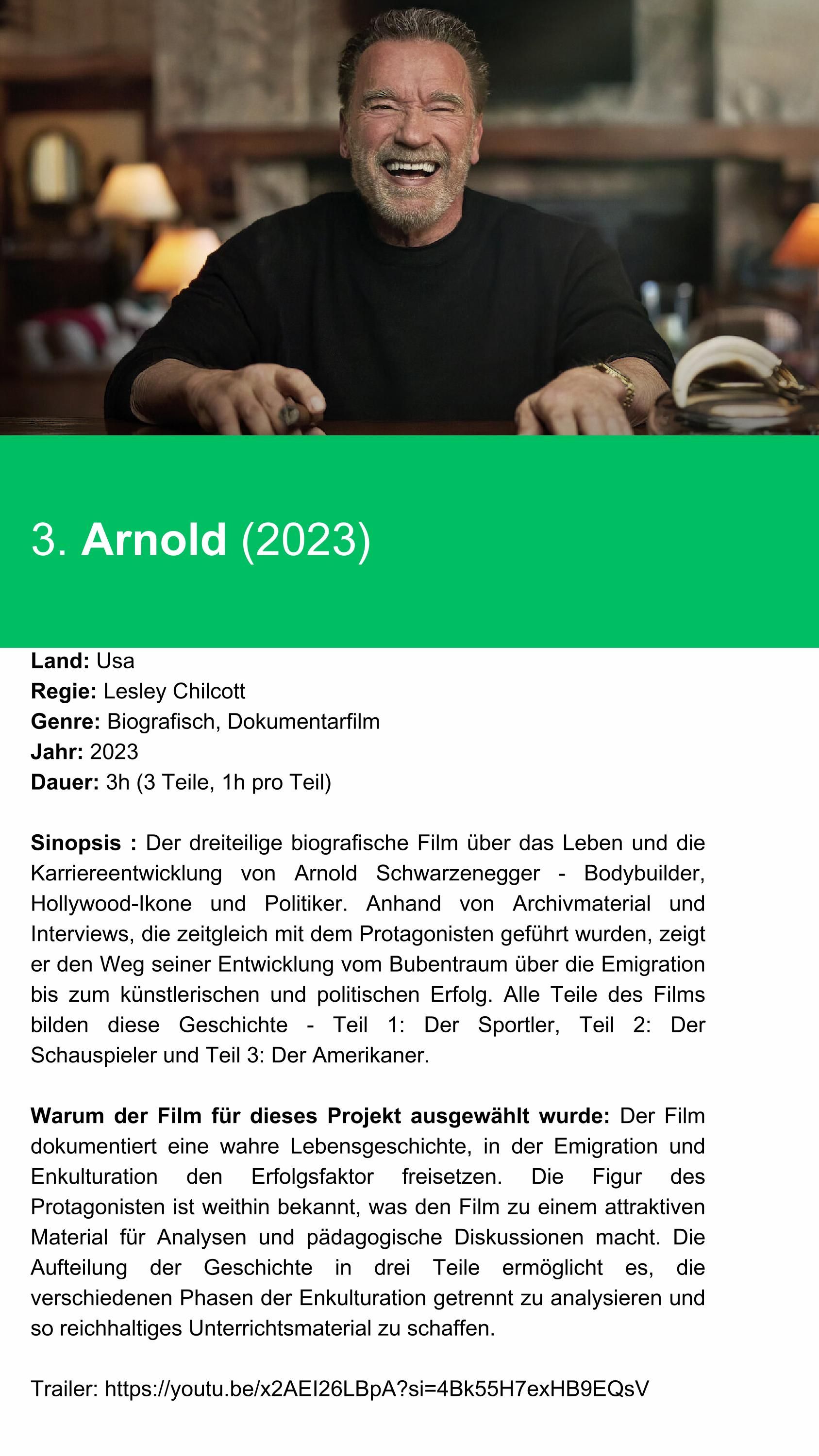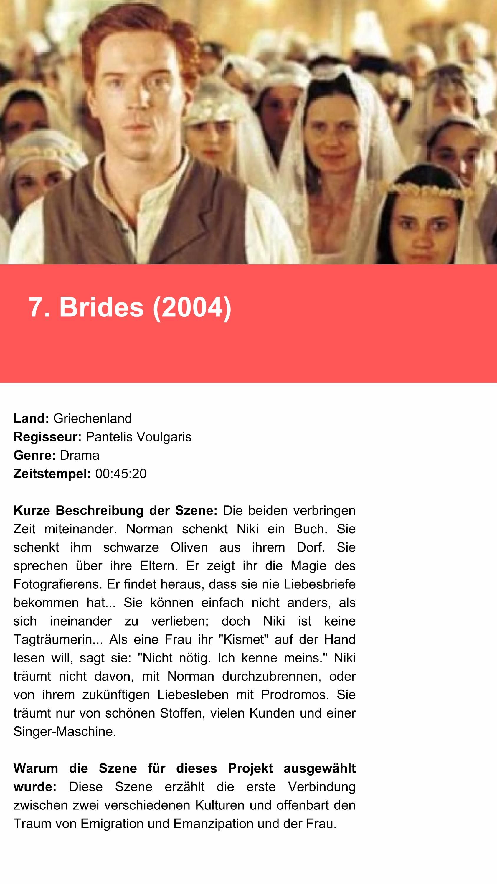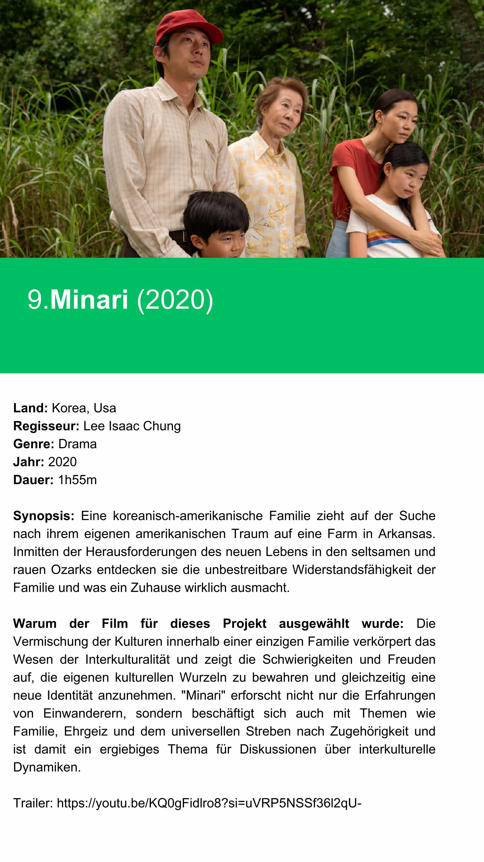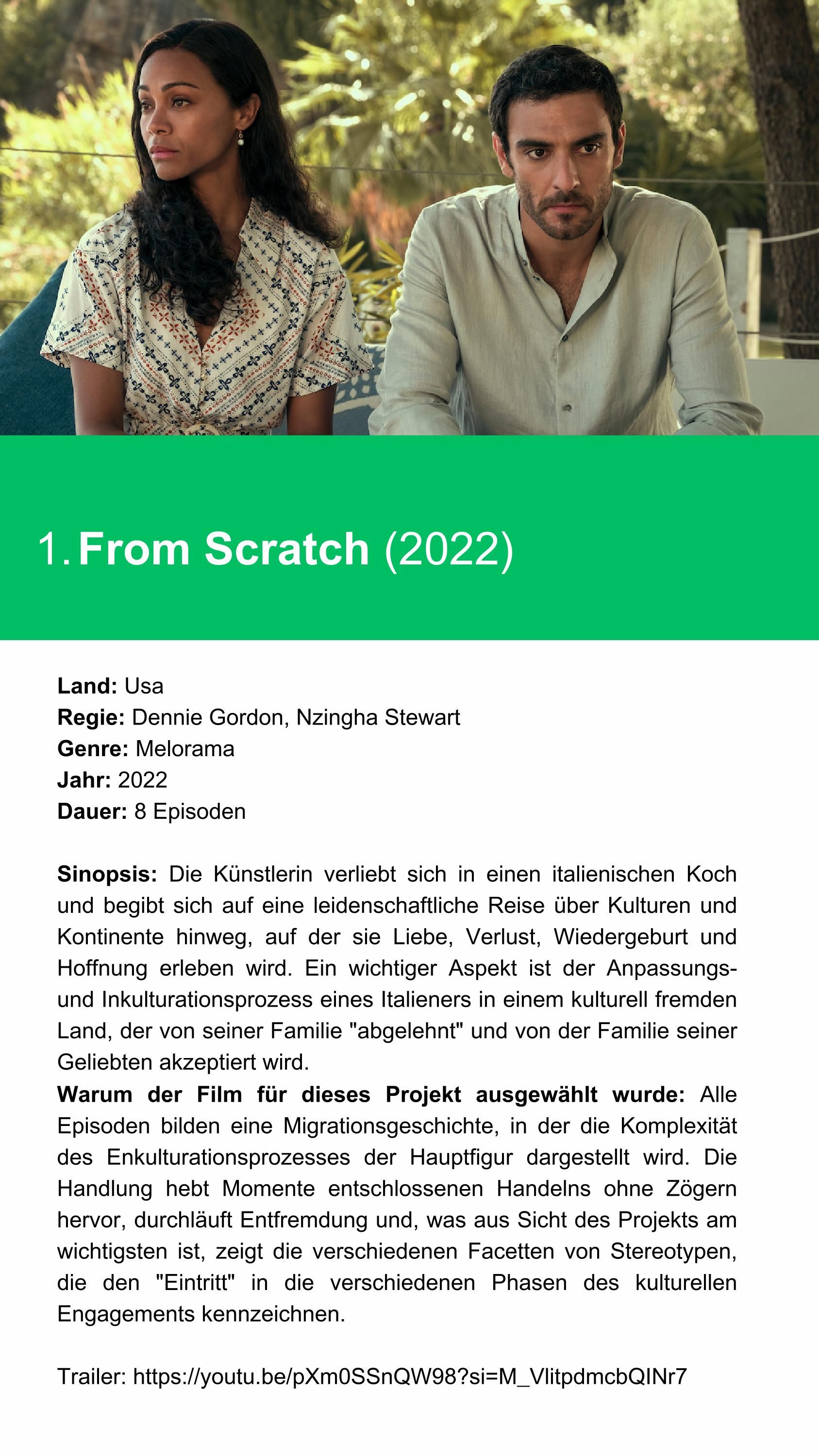 Der Katalog „Interkulturelle Kompetenzen durch Filme und Szenen“ wurde erstellt, um nützliche Beispiele für interkulturelle Kompetenzen in Aktion während interkultureller Kontakte zu liefern und diese im Detail zu analysieren. Ziel dieser Initiative ist es, die Anziehungskraft visueller Medien zu nutzen, um relevante Konzepte auf interaktive und ansprechende Weise zu verankern. Er umfasst 15 Filme (oder Serien in Episoden) und 15 Szenen, die ausgewählt wurden, um verschiedene Aspekte interkultureller Kompetenzen zu veranschaulichen.