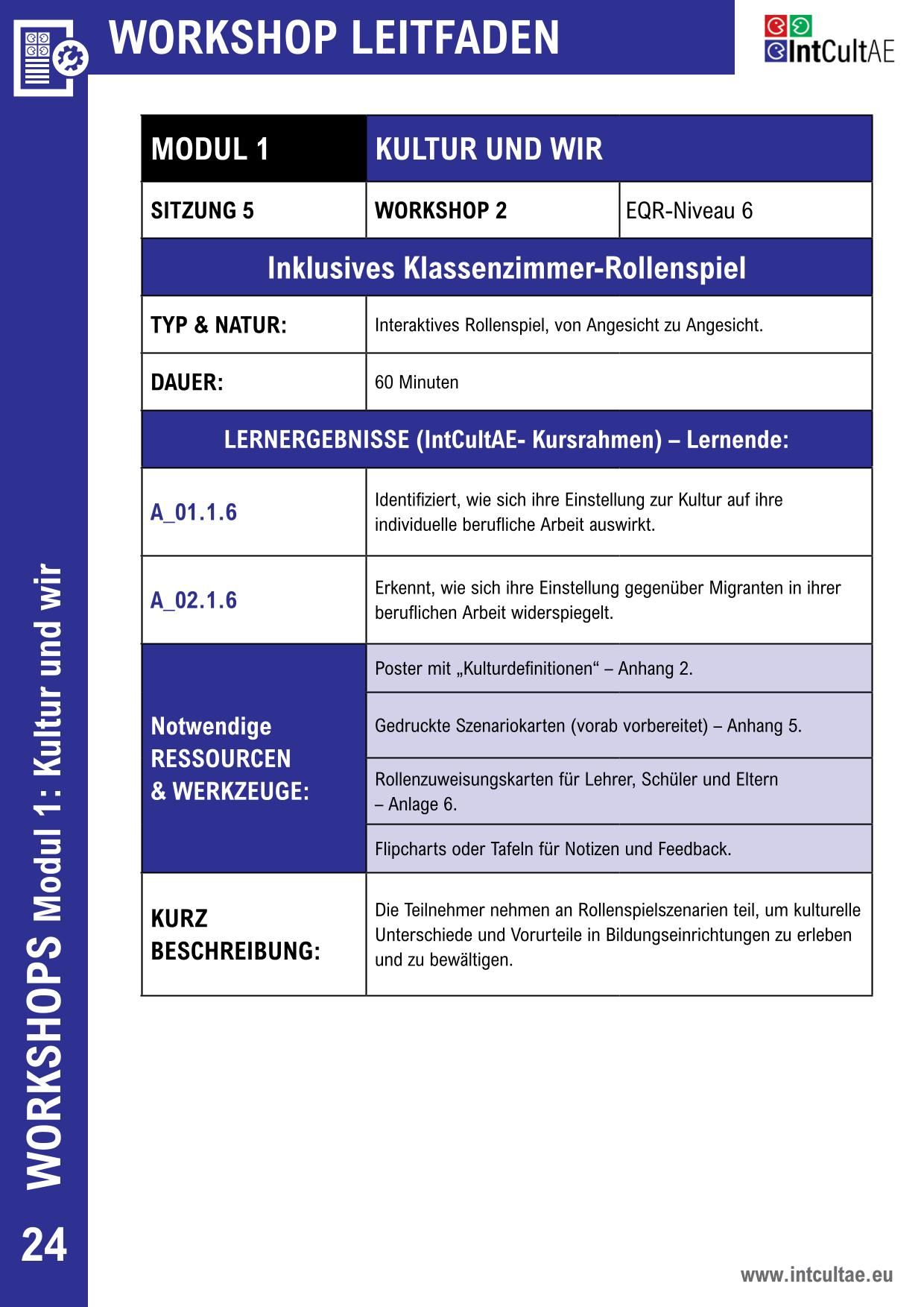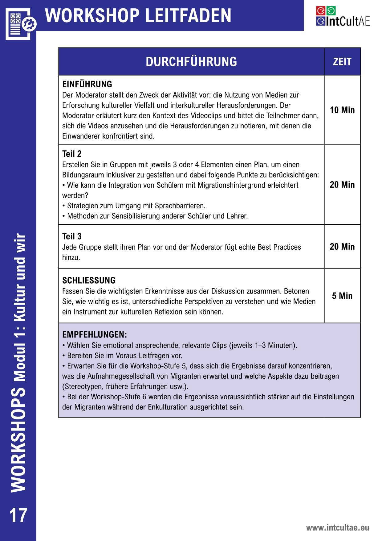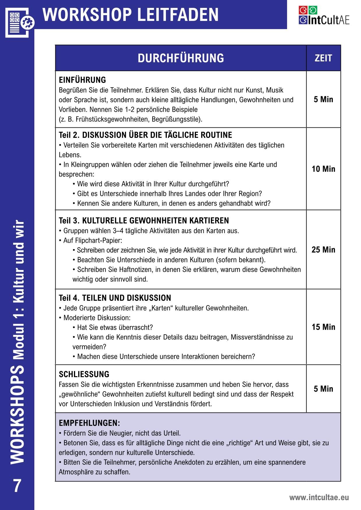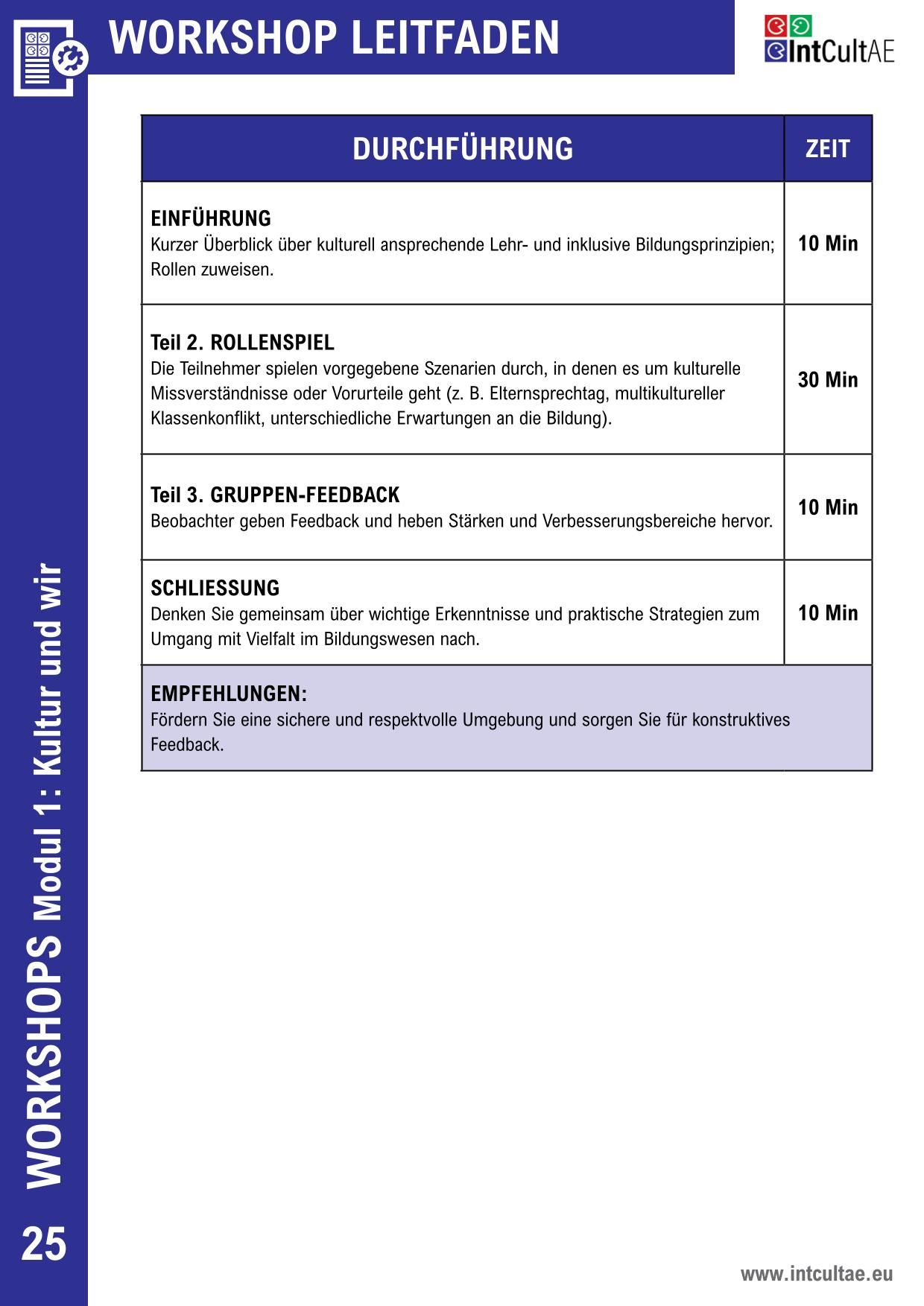 Jedes Online-Kursmodul wird in einen individuellen Präsenzworkshop umgesetzt, der im Leitfaden vorgestellt wird.
