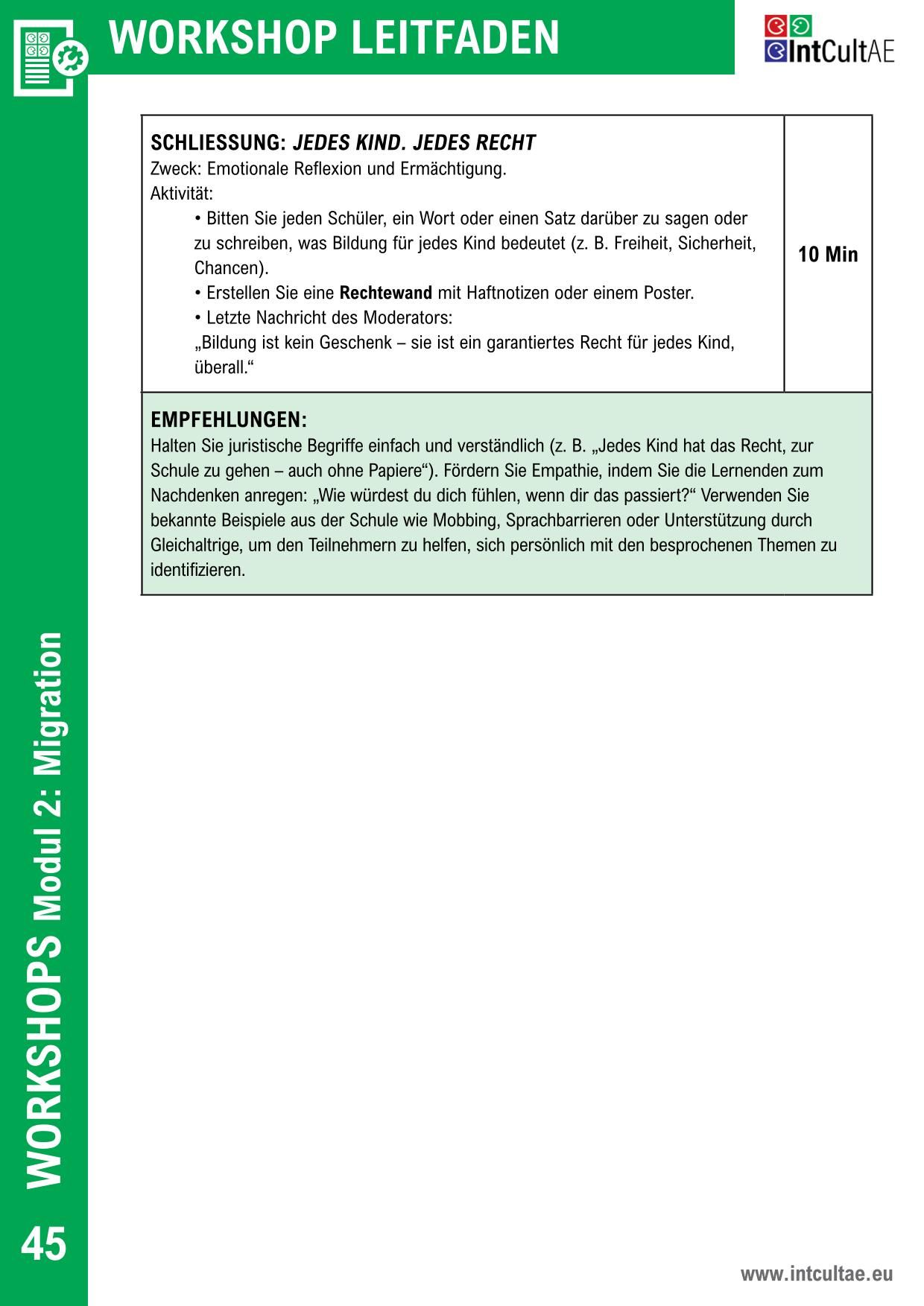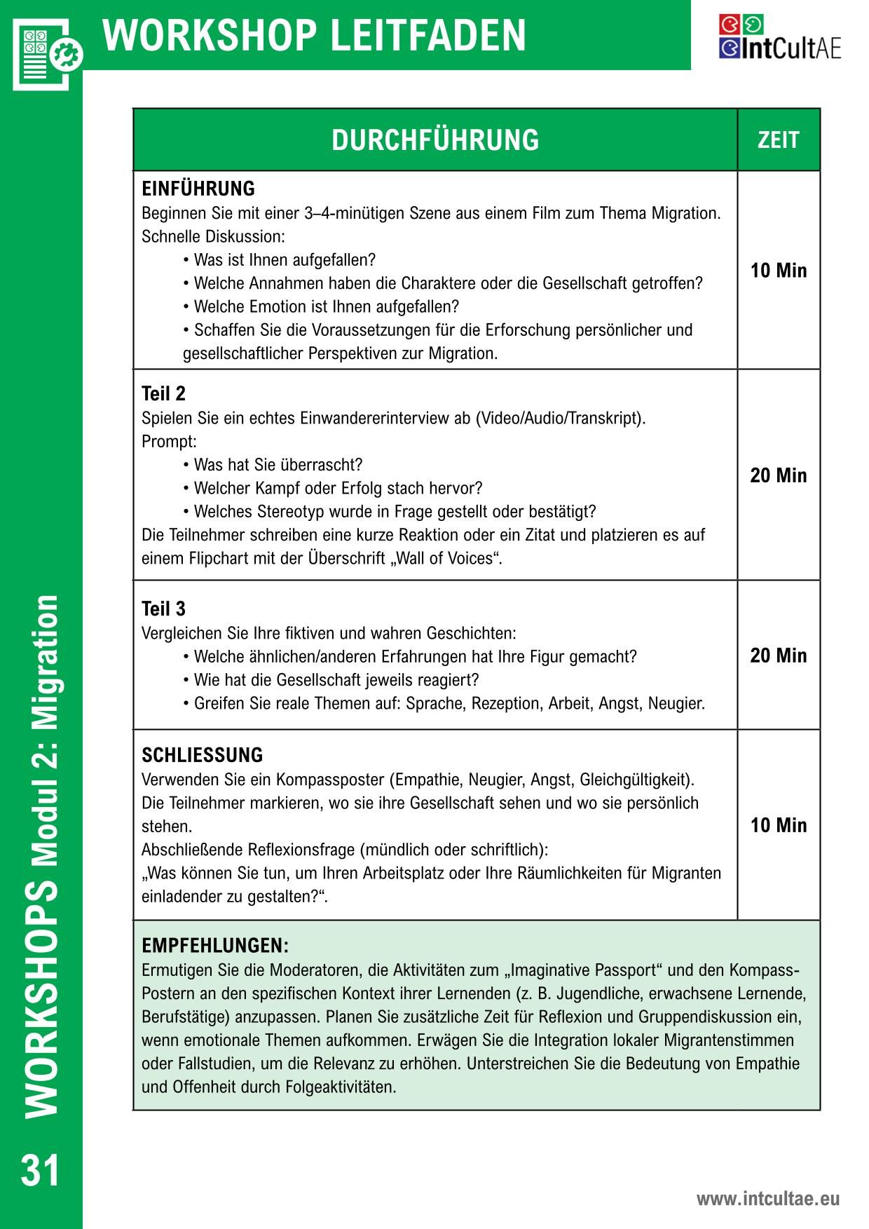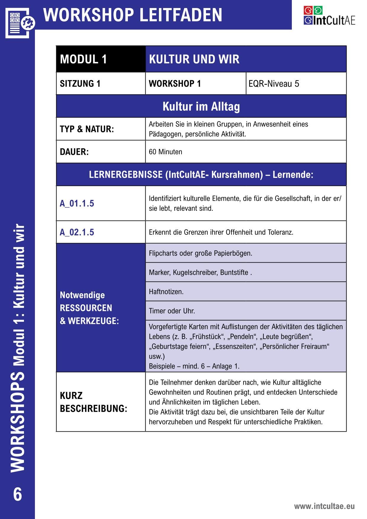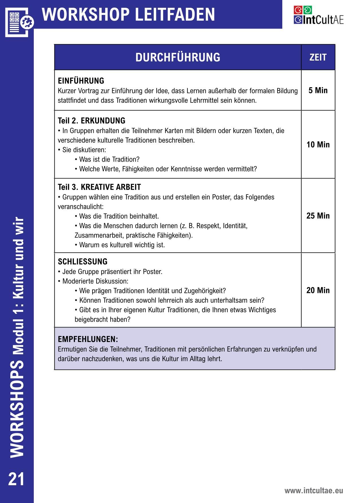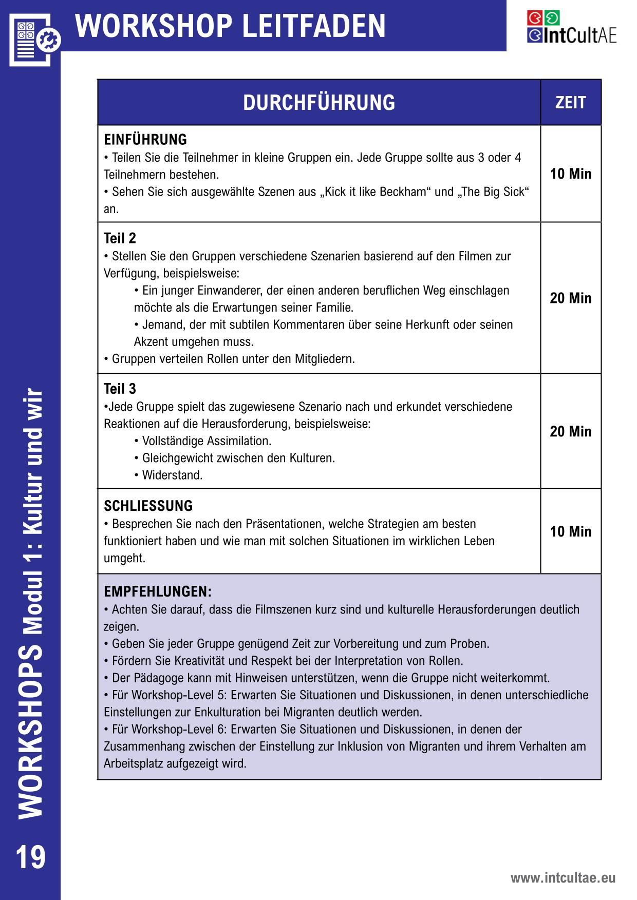 Jedes Online-Kursmodul wird in einen individuellen Präsenzworkshop umgesetzt, der im Leitfaden vorgestellt wird.
