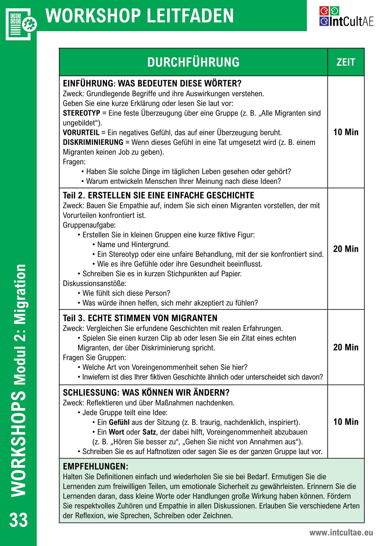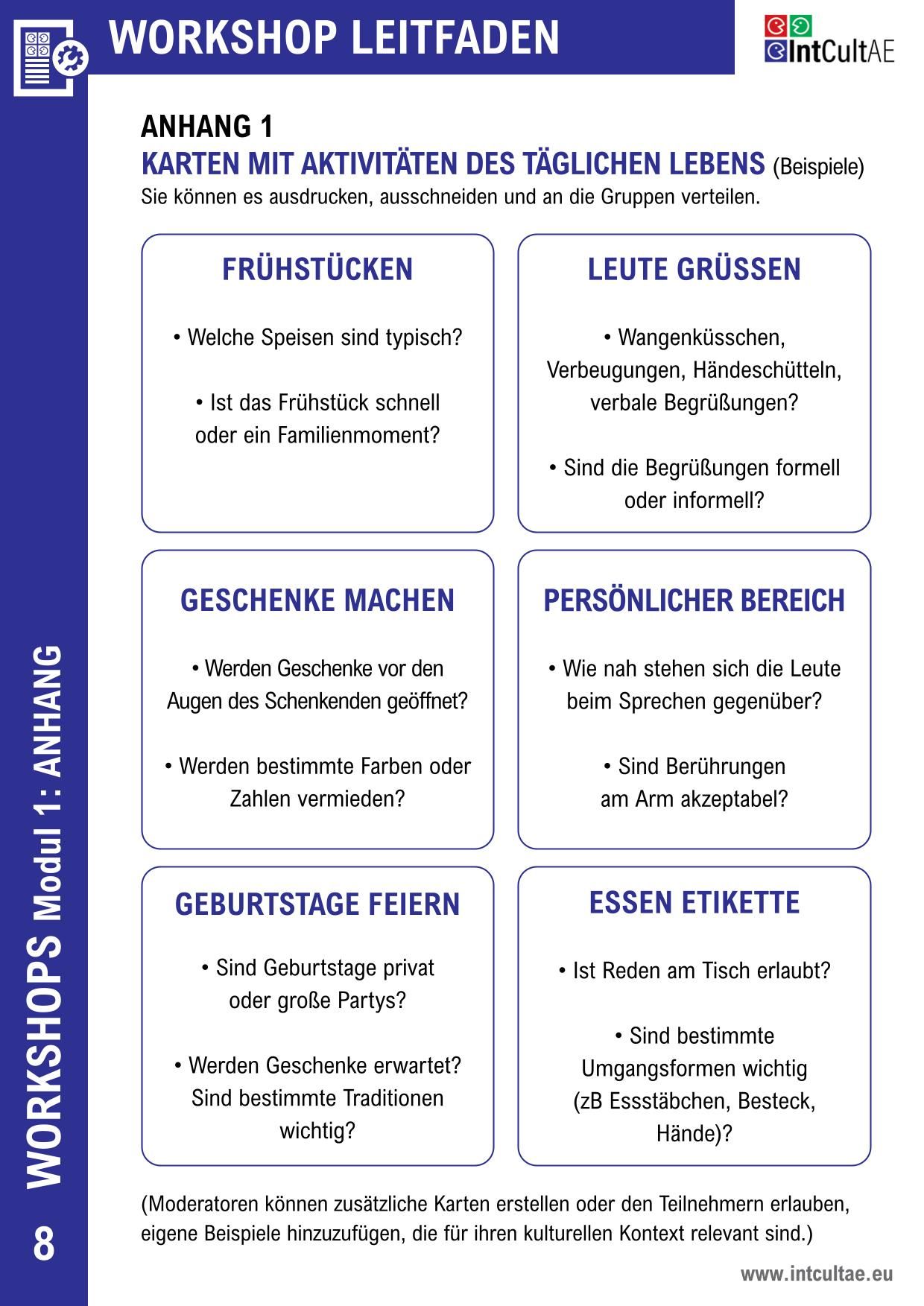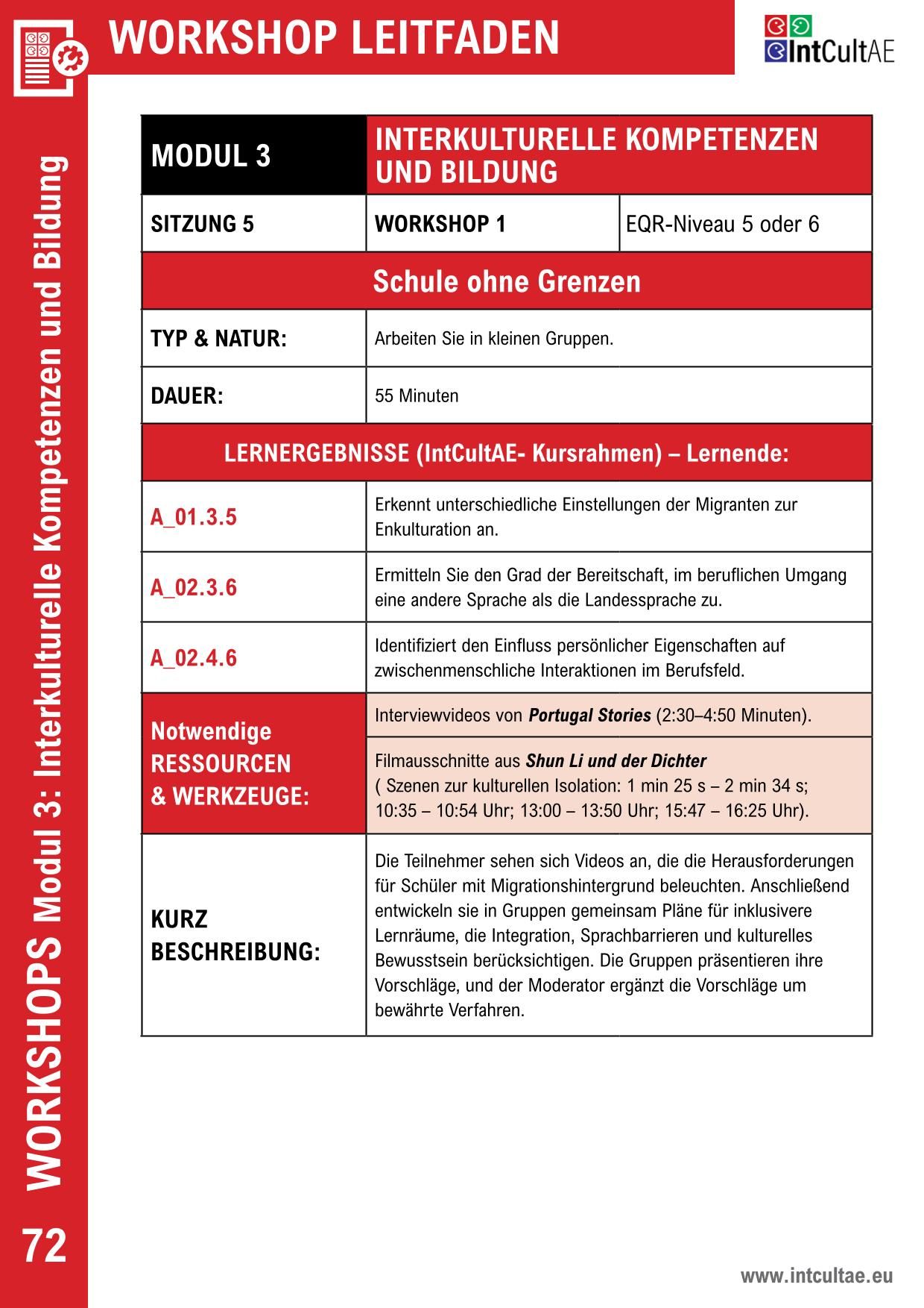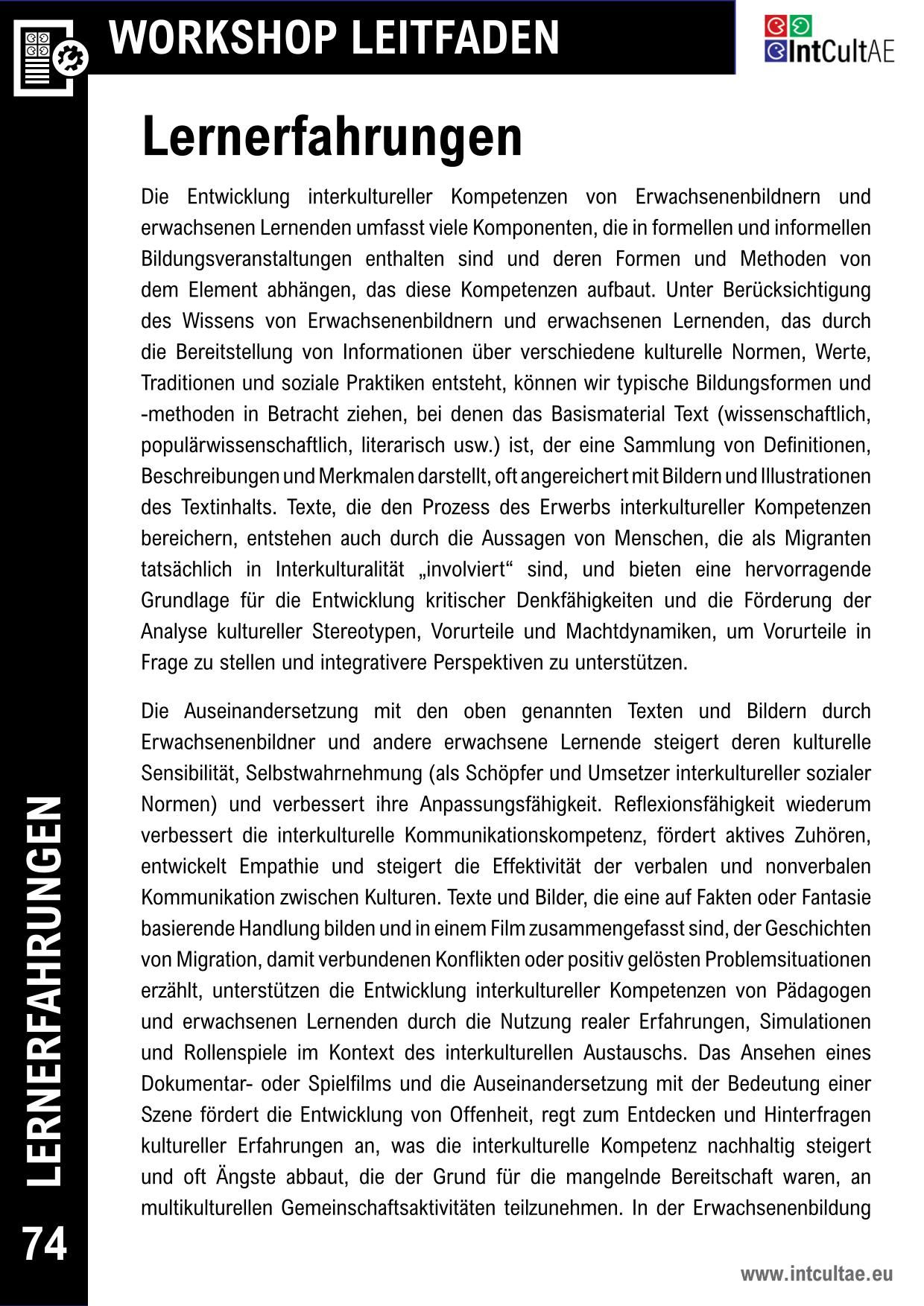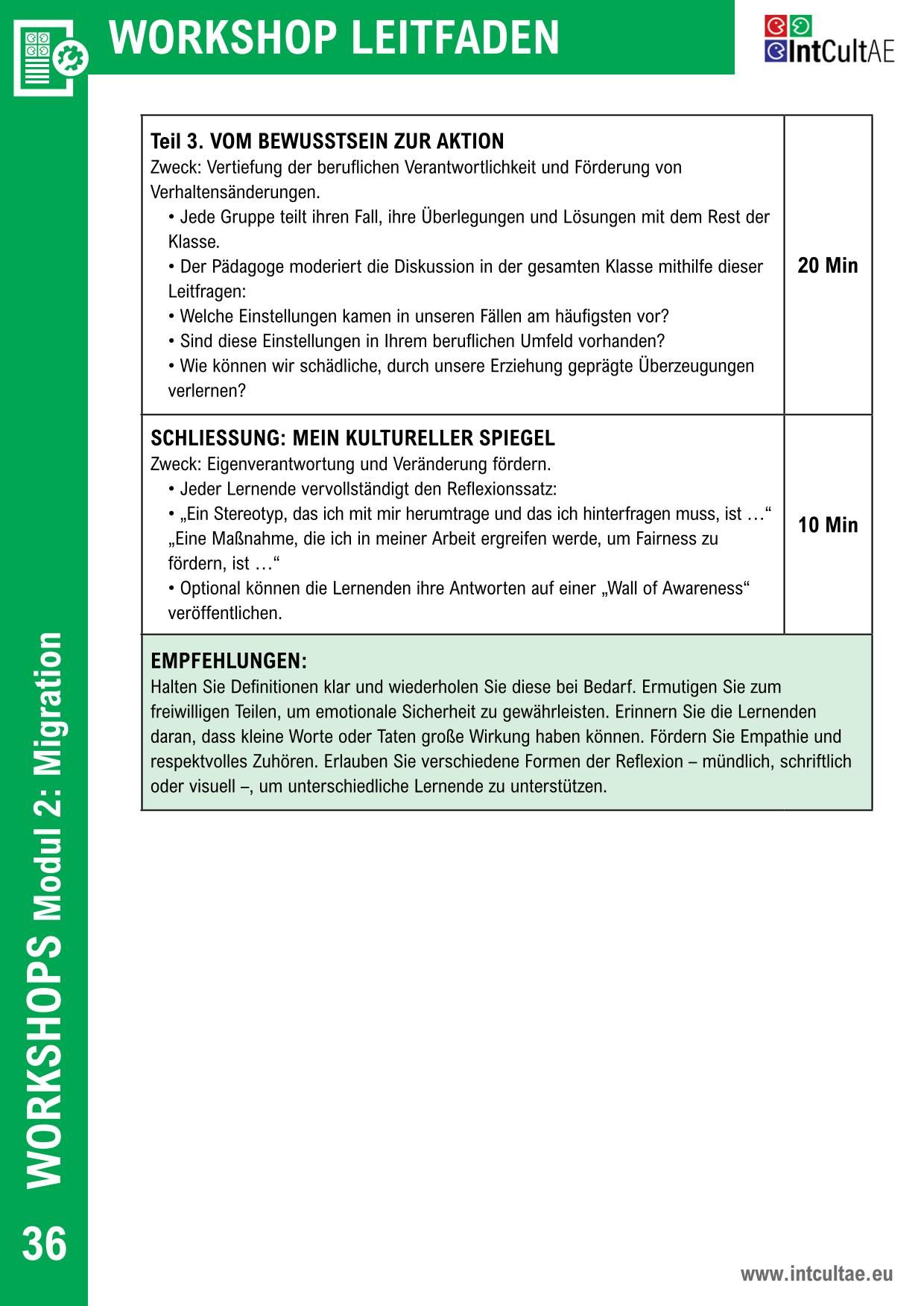Es richtet sich an Organisationen und Bildungseinrichtungen, die daran interessiert sind, ihre Workshops zu interkulturellen Kompetenzen für Erwachsenenbildner weiterzuentwickeln. Ziel ist es, das Potenzial von Gruppenaktivitäten von Angesicht zu Angesicht auszuschöpfen. Es enthält Hinweise zur technischen Umsetzung und schätzt die Möglichkeit, Fähigkeiten in realen Szenarien zu üben und Erfahrungen in Fokusgruppen zu diskutieren.