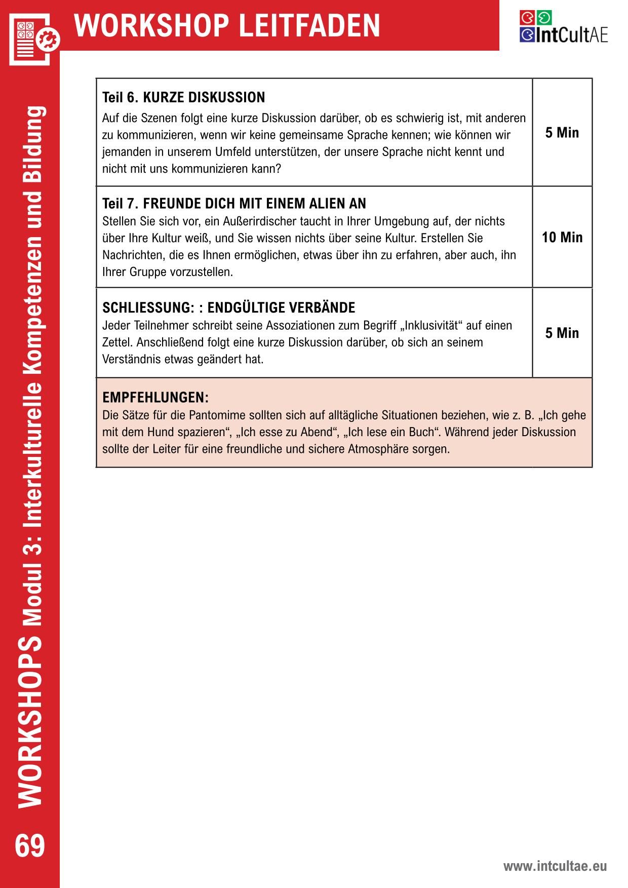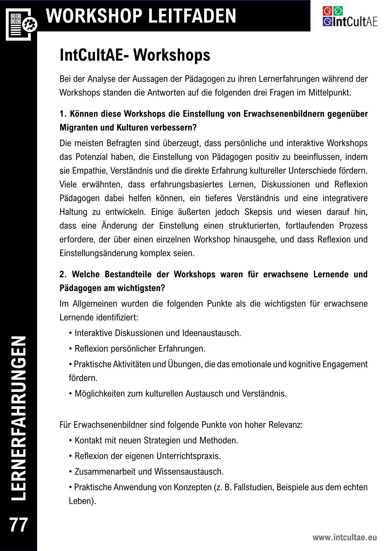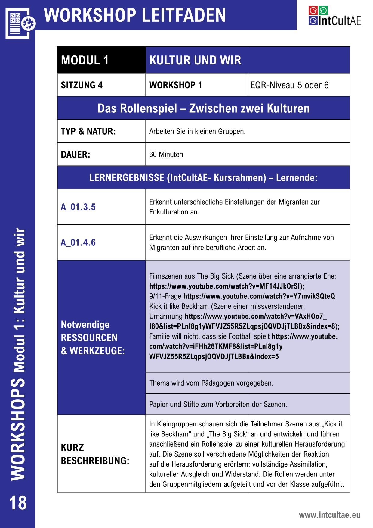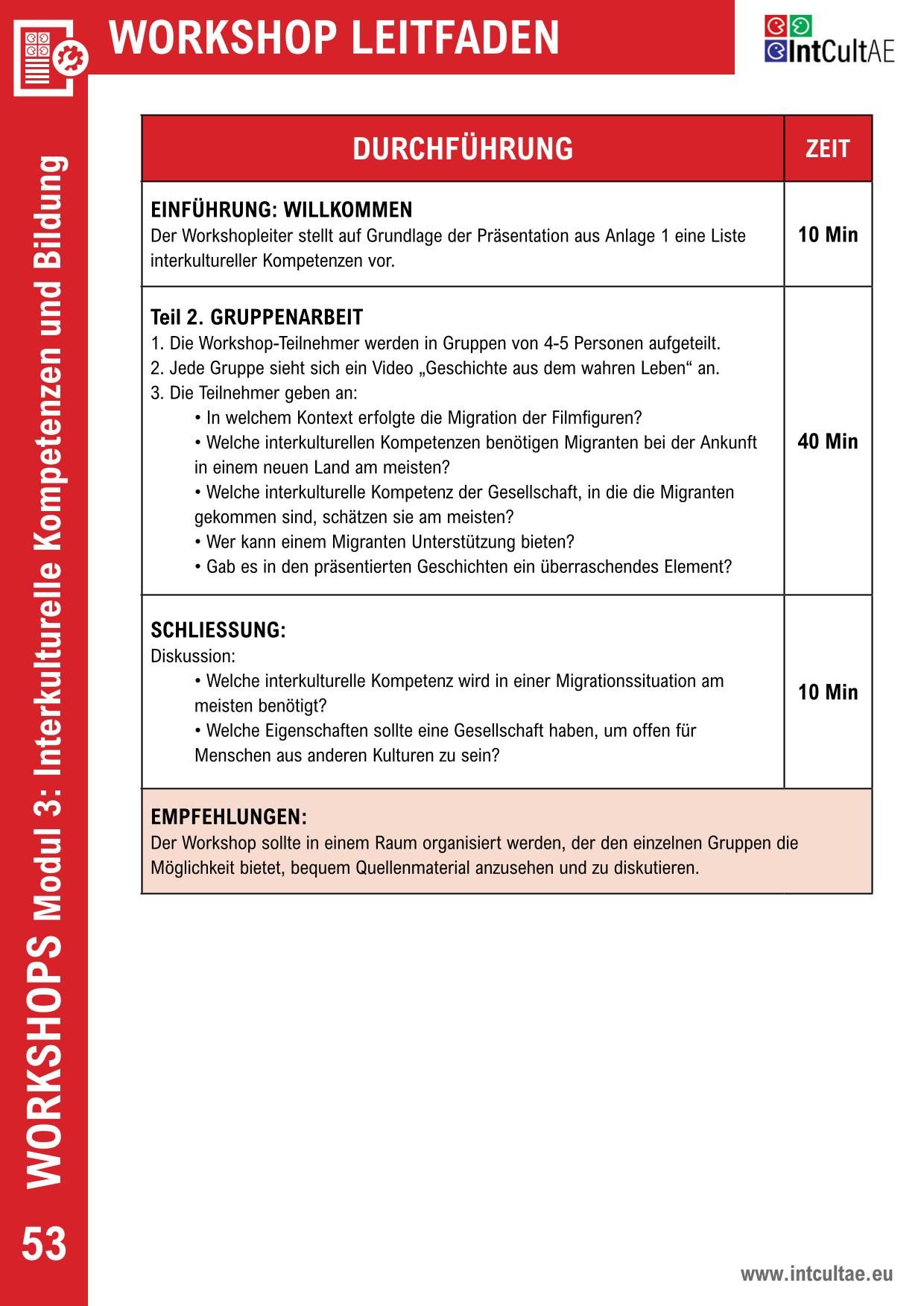 Es richtet sich an Organisationen und Bildungseinrichtungen, die daran interessiert sind, ihre Workshops zu interkulturellen Kompetenzen für Erwachsenenbildner weiterzuentwickeln. Ziel ist es, das Potenzial von Gruppenaktivitäten von Angesicht zu Angesicht auszuschöpfen. Es enthält Hinweise zur technischen Umsetzung und schätzt die Möglichkeit, Fähigkeiten in realen Szenarien zu üben und Erfahrungen in Fokusgruppen zu diskutieren.