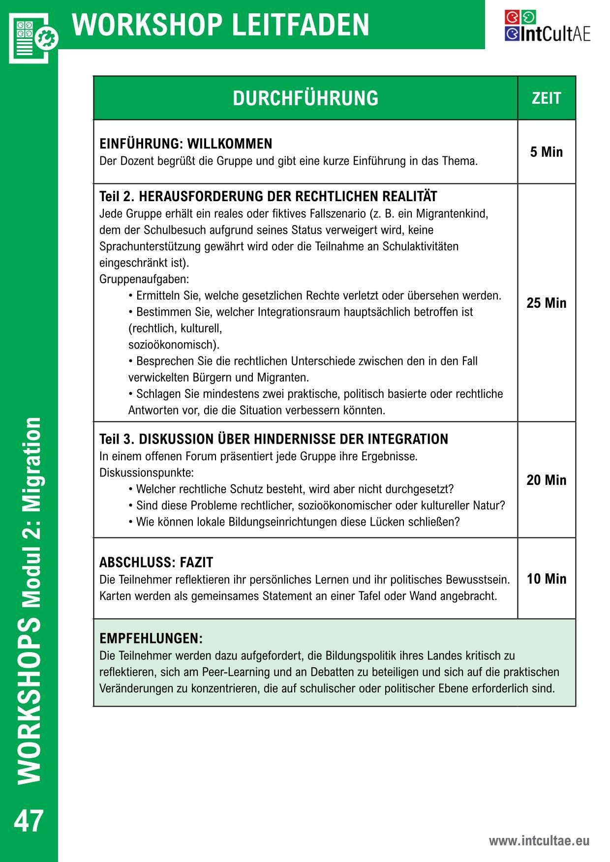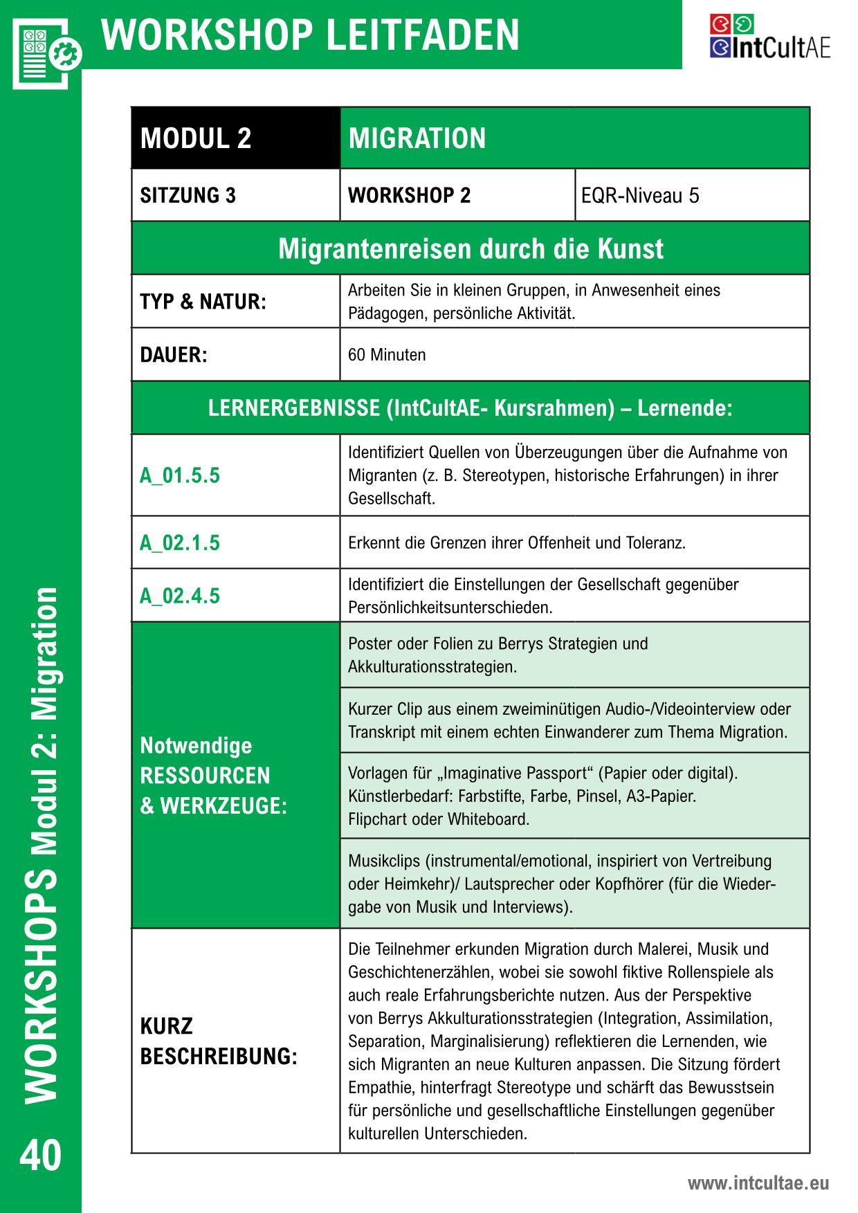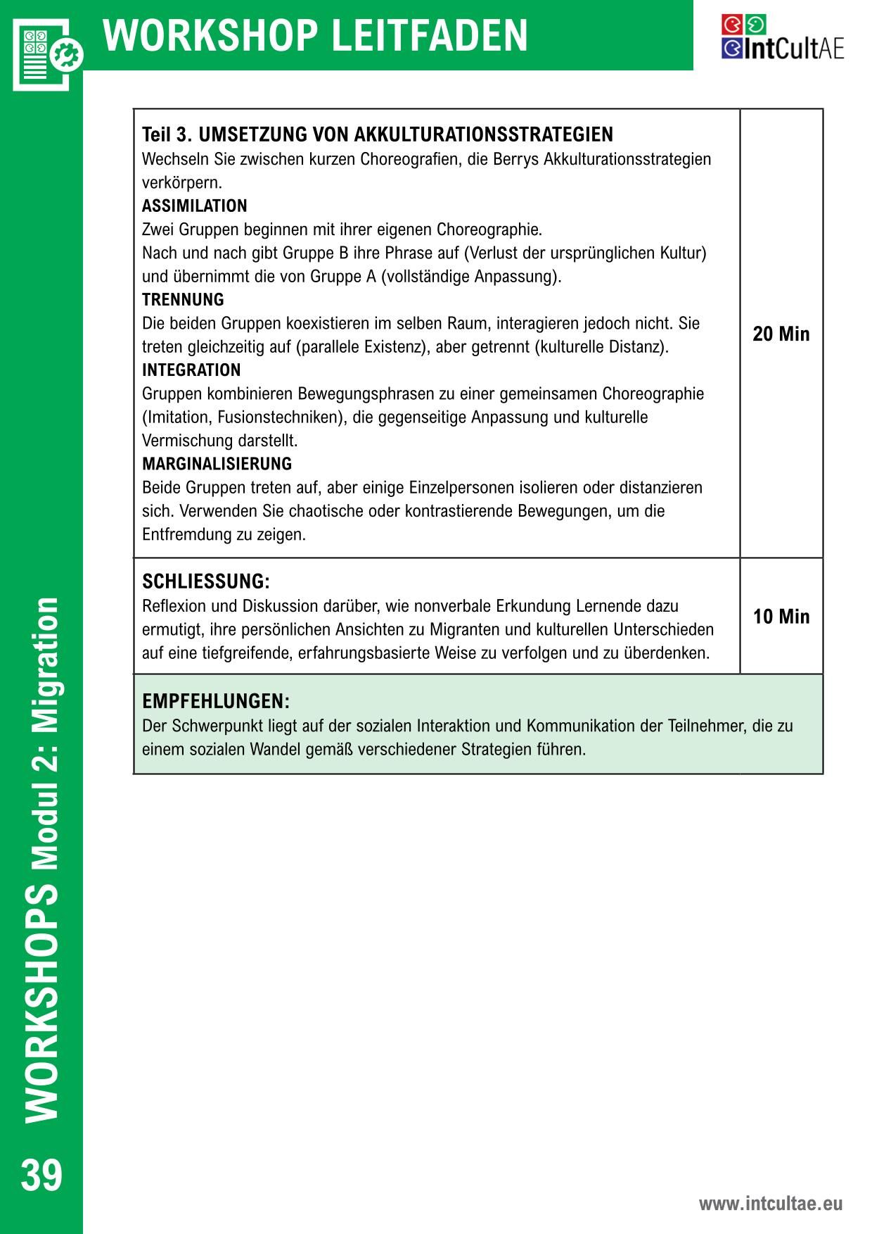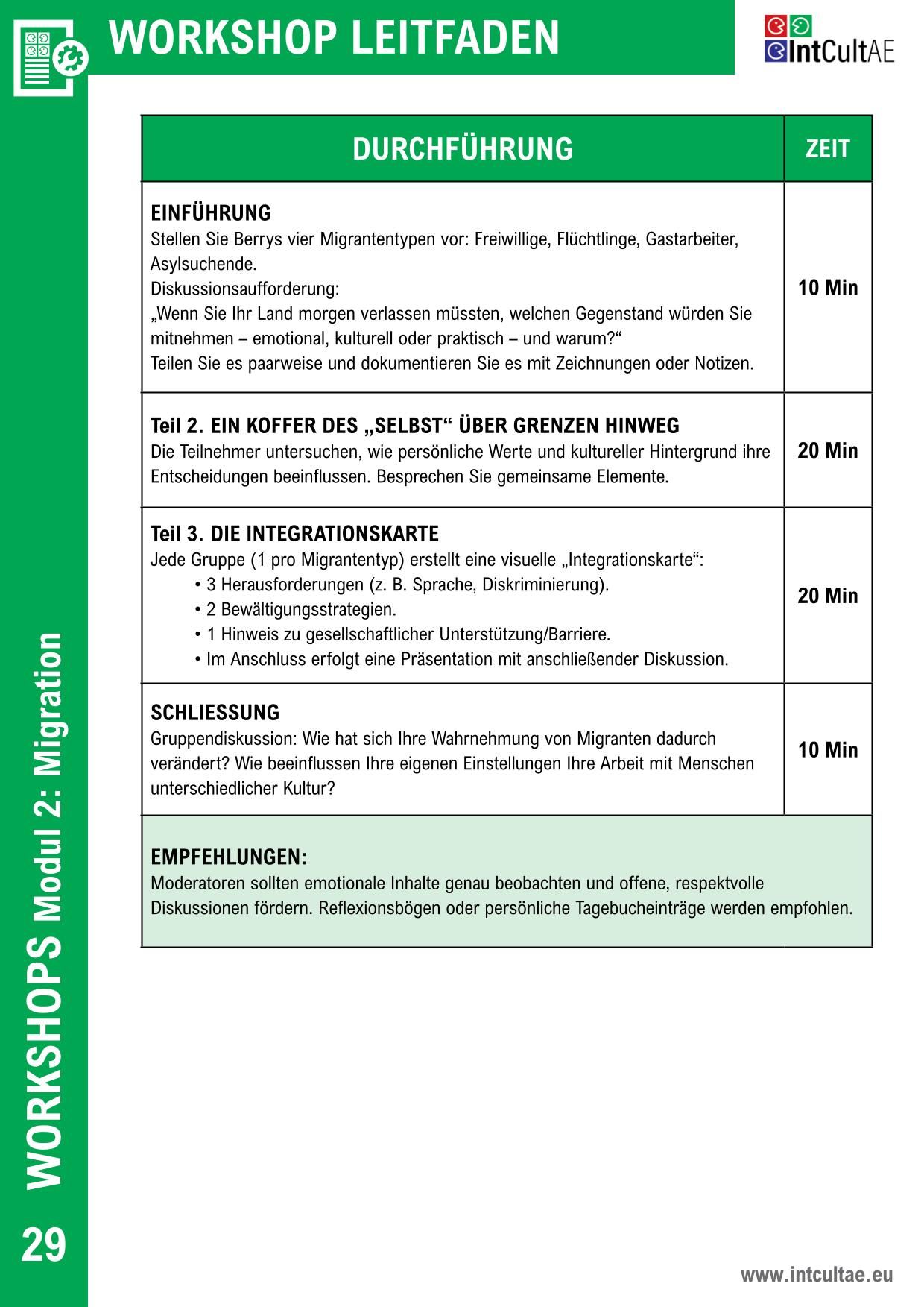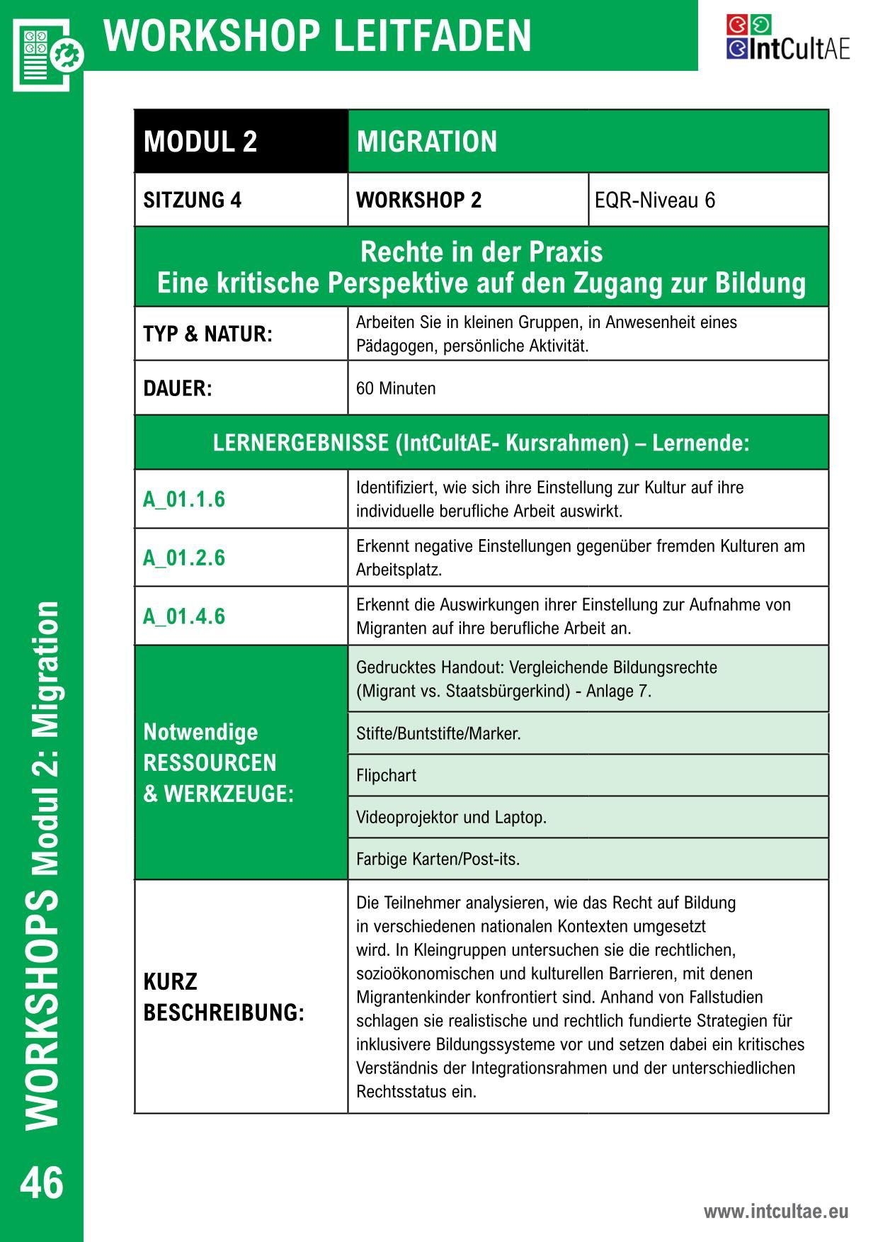 Es richtet sich an Organisationen und Bildungseinrichtungen, die daran interessiert sind, ihre Workshops zu interkulturellen Kompetenzen für Erwachsenenbildner weiterzuentwickeln. Ziel ist es, das Potenzial von Gruppenaktivitäten von Angesicht zu Angesicht auszuschöpfen. Es enthält Hinweise zur technischen Umsetzung und schätzt die Möglichkeit, Fähigkeiten in realen Szenarien zu üben und Erfahrungen in Fokusgruppen zu diskutieren.