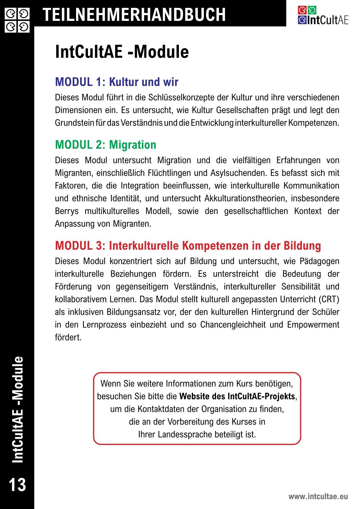Der Kurs wendet den Rahmen an und integriert den Katalog und das Real-Life Stories in seine Module ein, mit dem Ziel, die interkulturelle Kompetenz von Erwachsenenbildnern zu verbessern. Kompentzen.