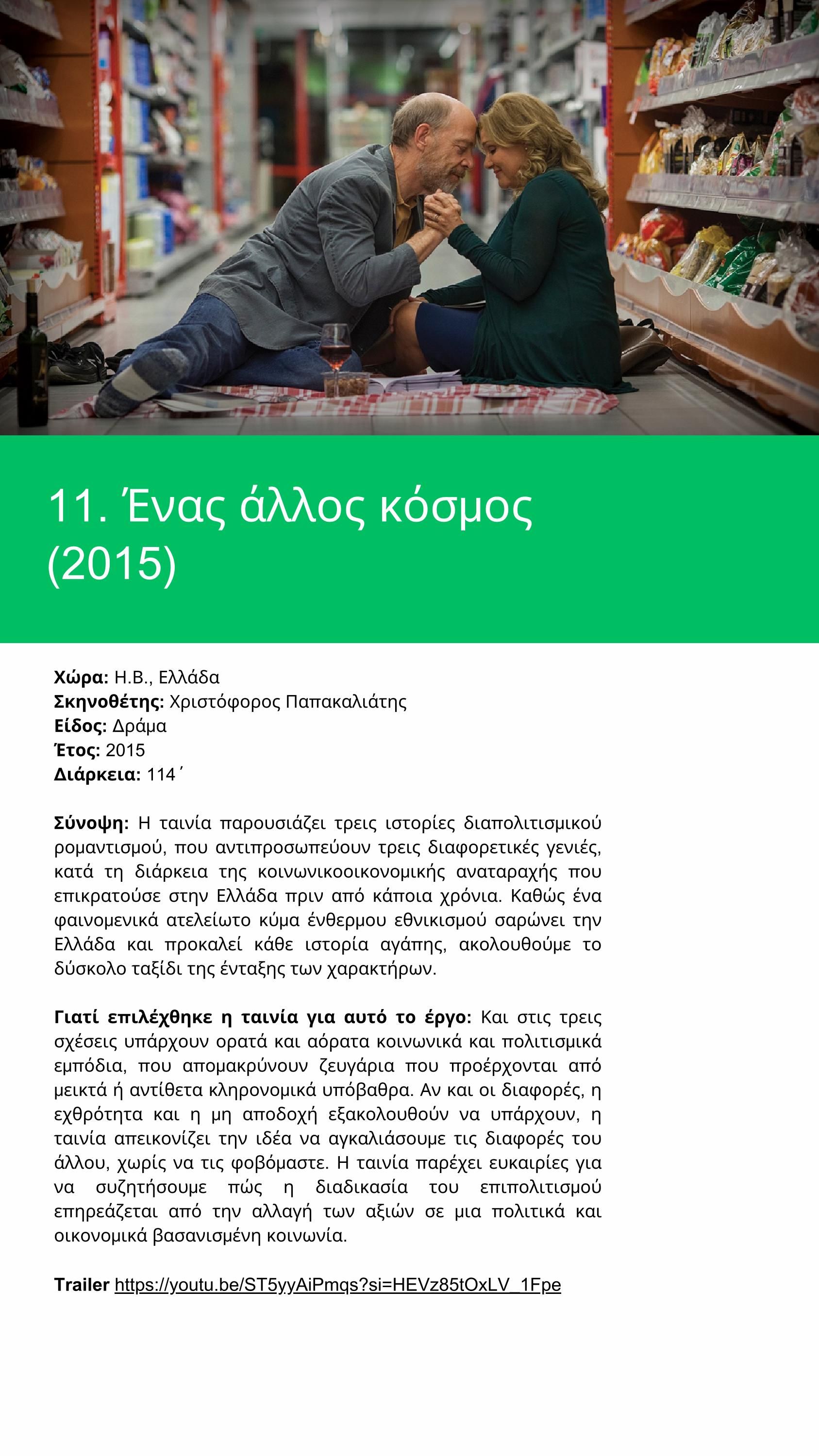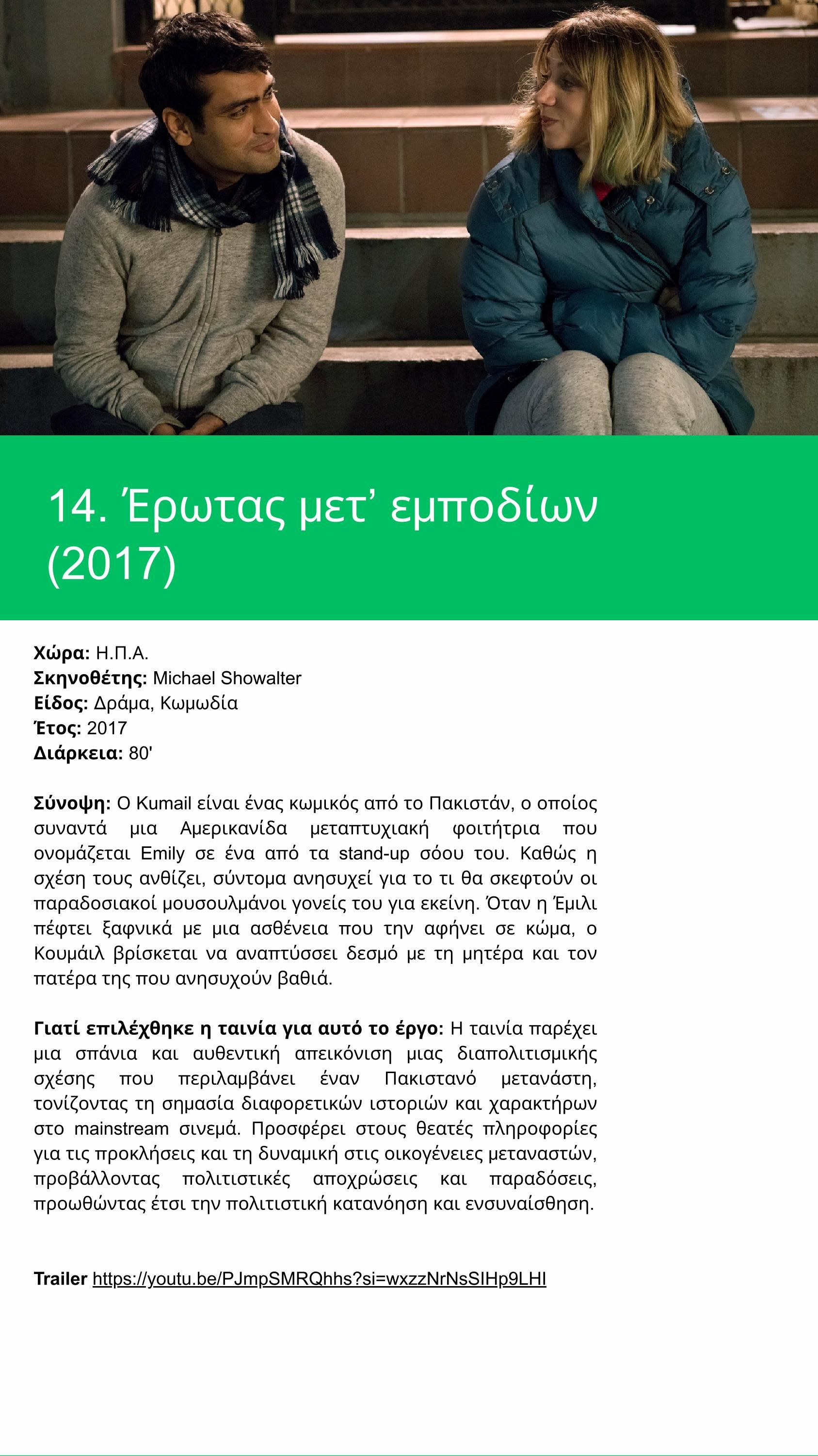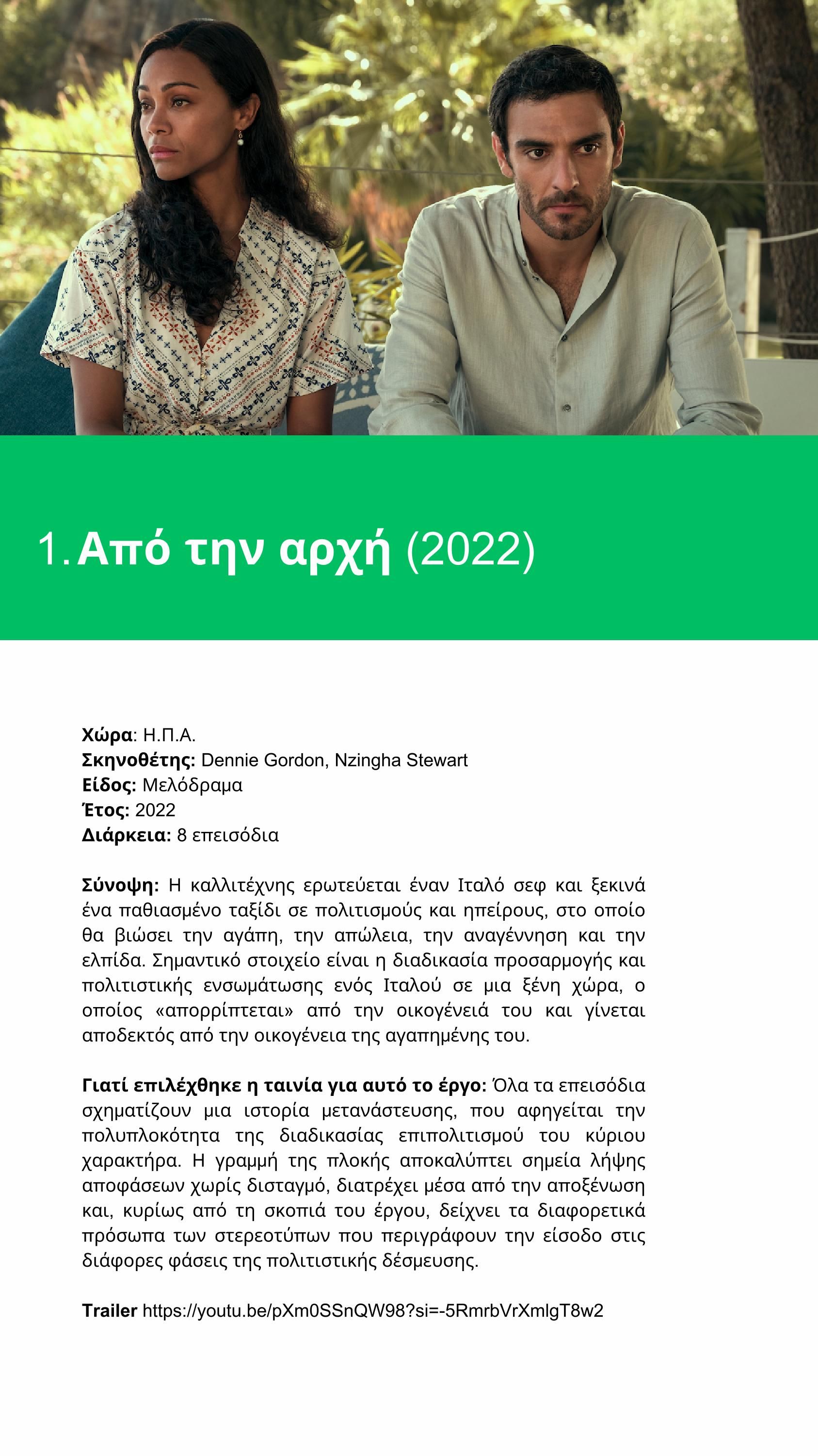 Μια συναρπαστική συλλογή ταινιών και σκηνών που έχουν σχεδιαστεί για να συζητήσουμε ουσιαστικές διαπολιτισμικές αλληλεπιδράσεις.
