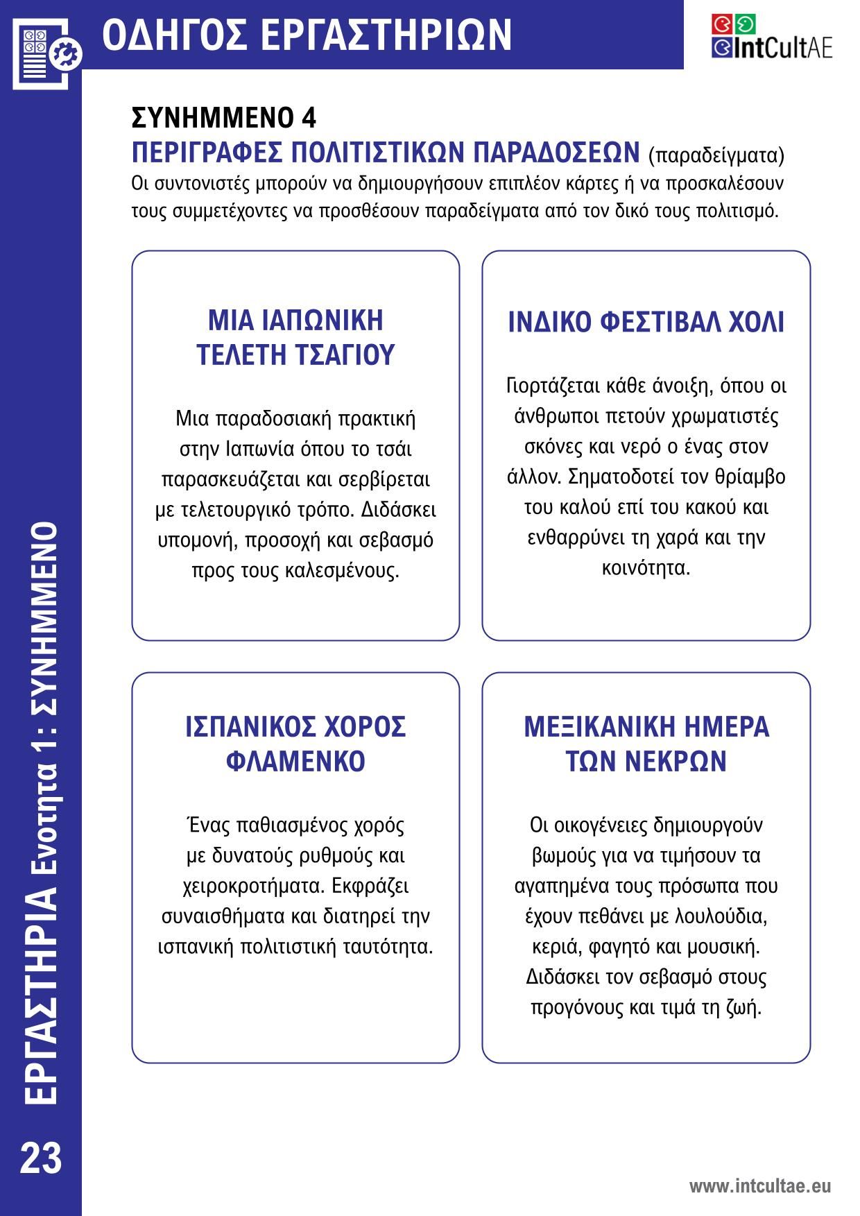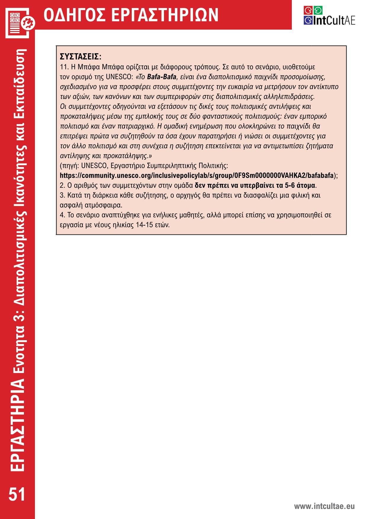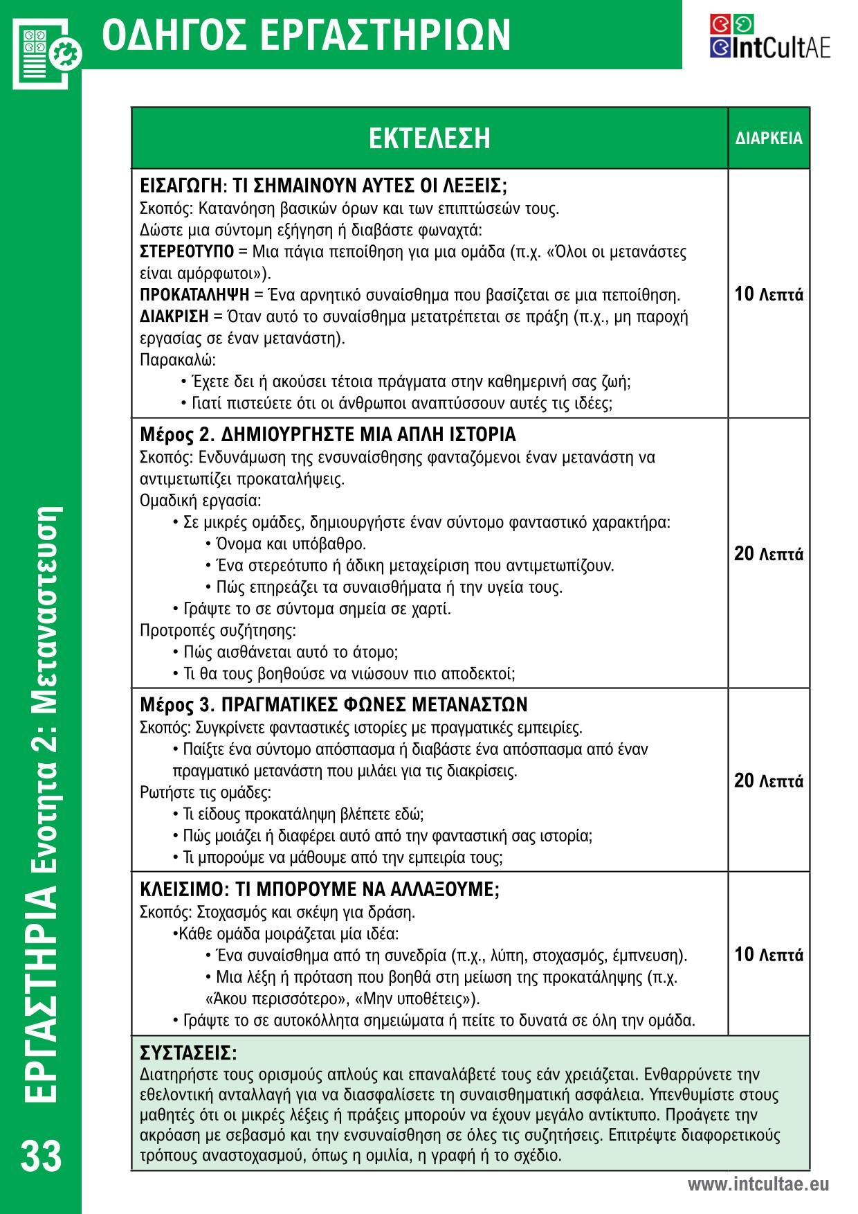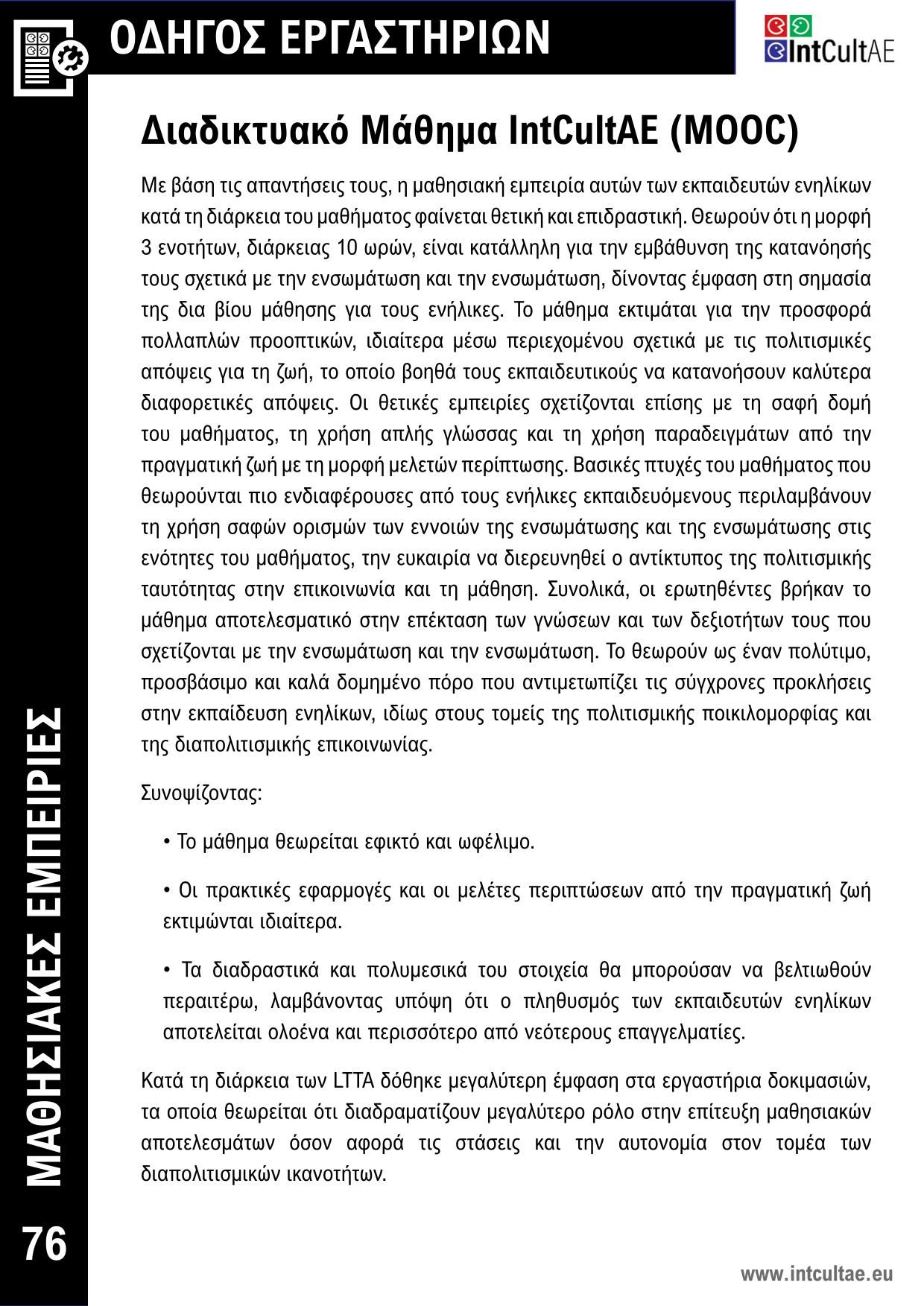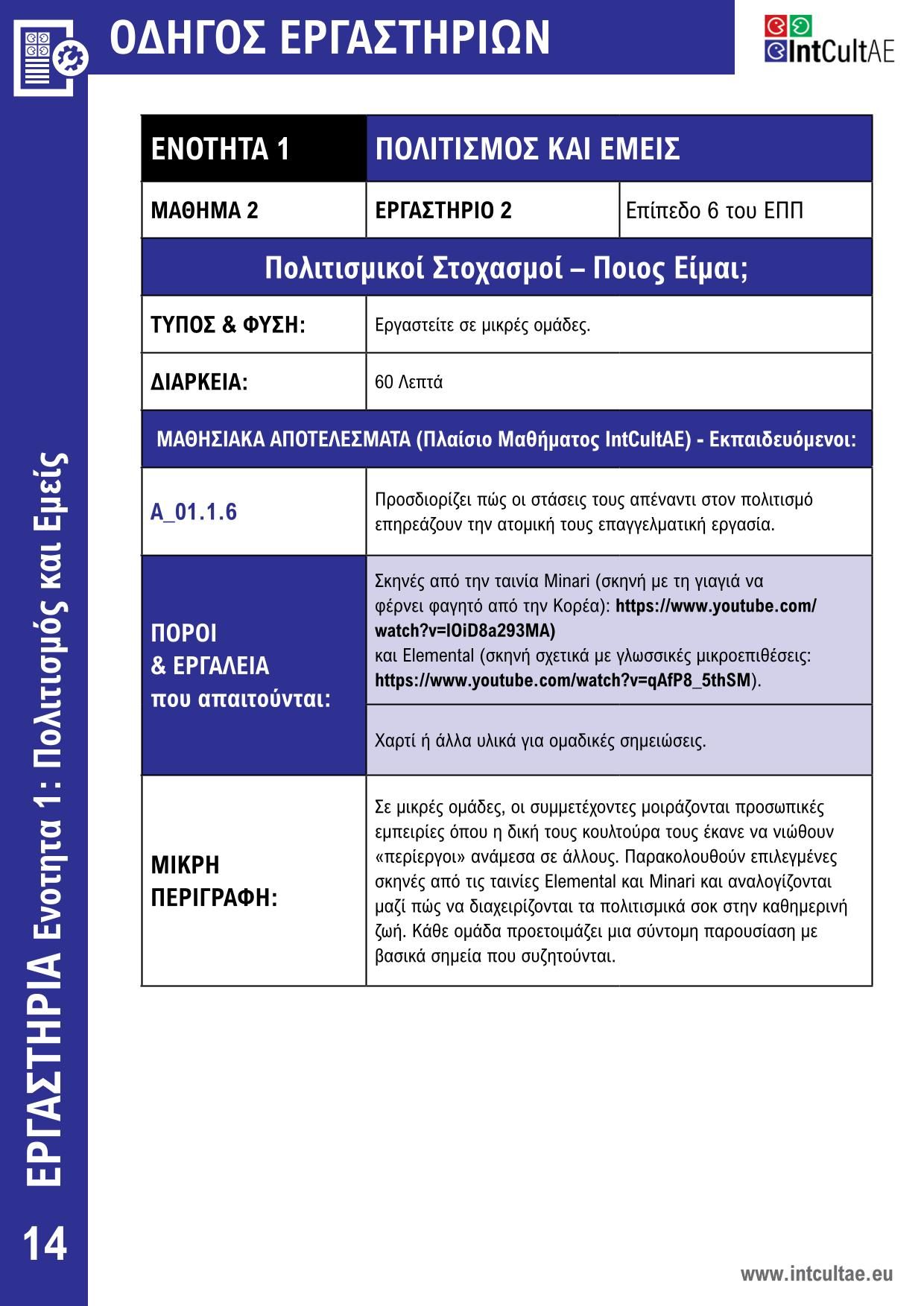 Στοχεύει σε οργανισμούς και εκπαιδευτικά ιδρύματα που ενδιαφέρονται να αναπτύξουν εργαστήρια για τις διαπολιτισμικές ικανότητες των εκπαιδευτών ενηλίκων. Στοχεύει στο να αξιοποιήσει το δυναμικό των ομαδικών δραστηριοτήτων πρόσωπο με πρόσωπο. Περιλαμβάνει οδηγίες σχετικά με την τεχνική υλοποίηση και αξιολογεί την ευκαιρία να εξασκηθούν δεξιότητες σε πραγματικά περιβάλλοντα και να συζητηθούν εμπειρίες σε ομάδες εστίασης.