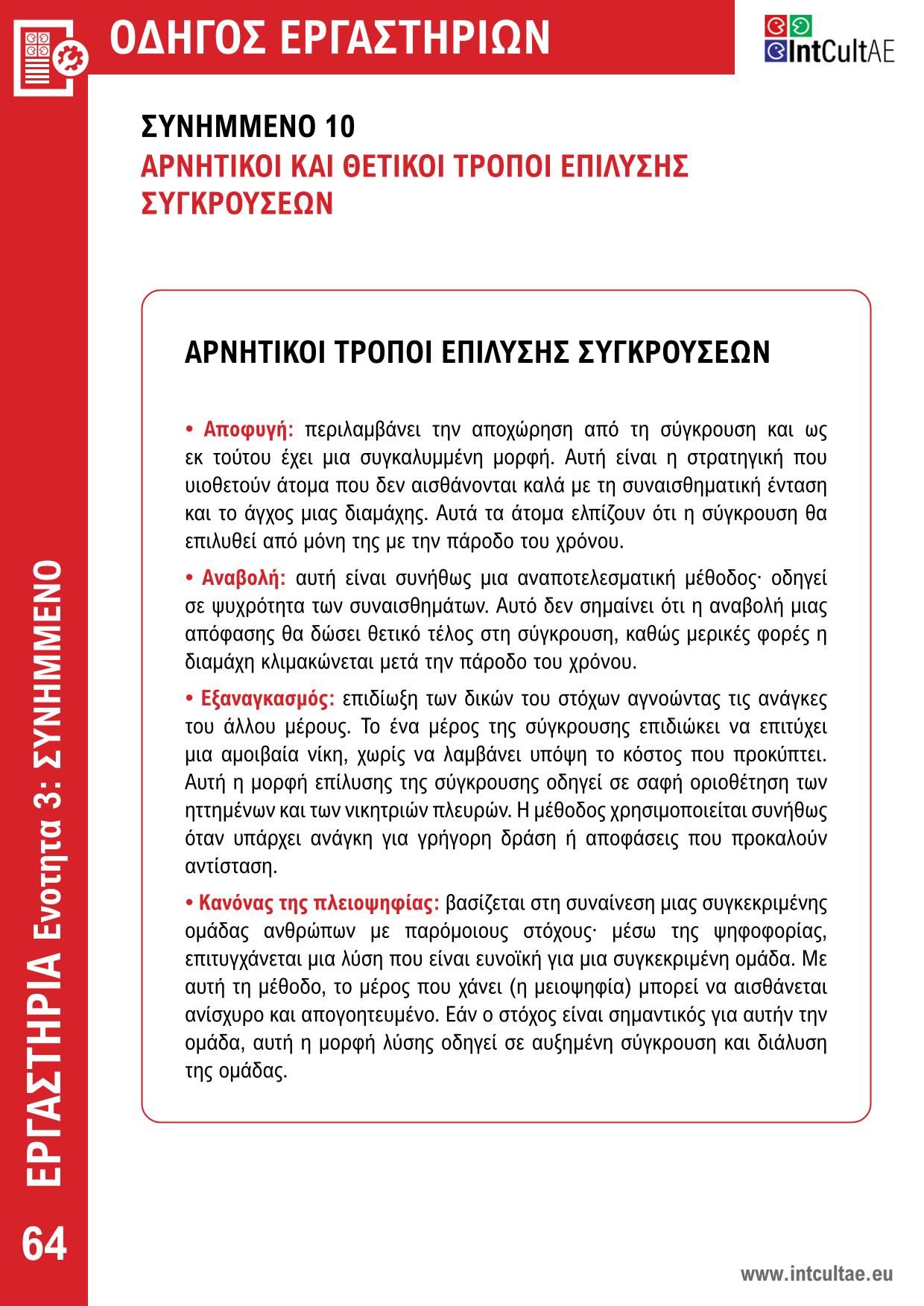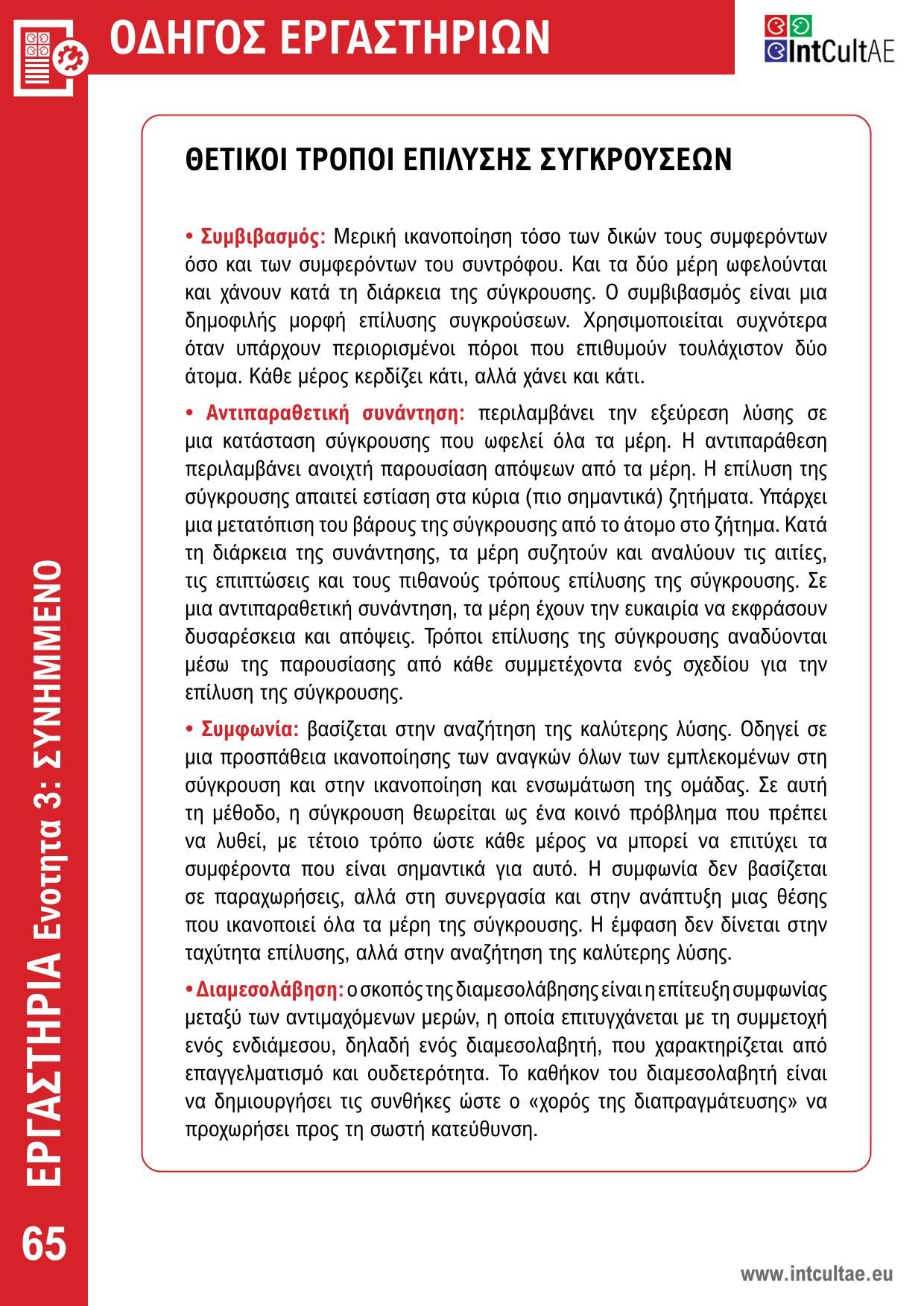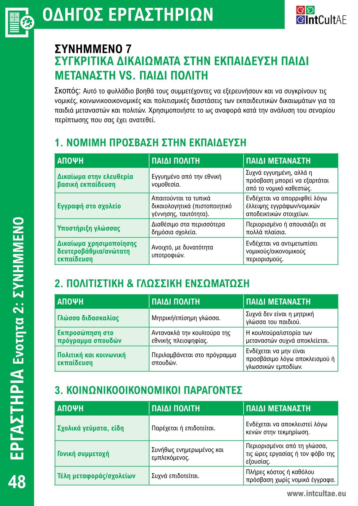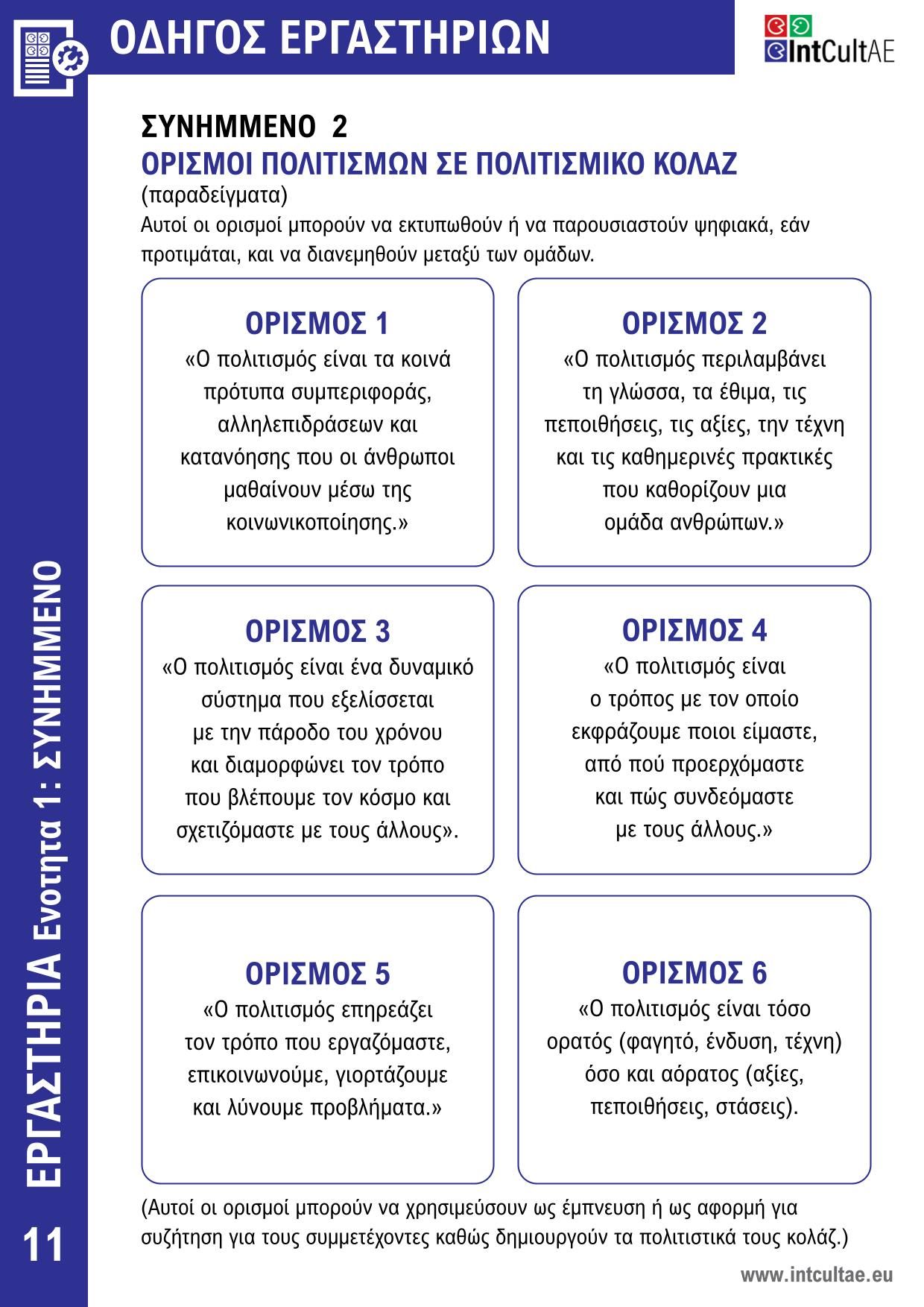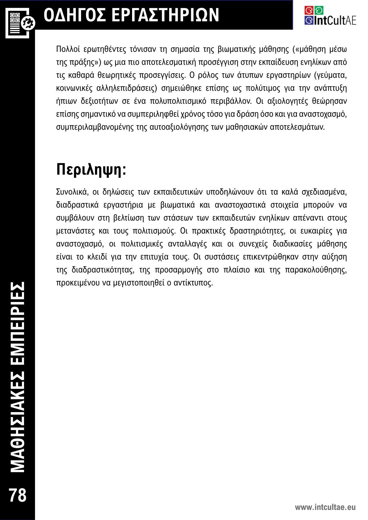 Στοχεύει σε οργανισμούς και εκπαιδευτικά ιδρύματα που ενδιαφέρονται να αναπτύξουν εργαστήρια για τις διαπολιτισμικές ικανότητες των εκπαιδευτών ενηλίκων. Στοχεύει στο να αξιοποιήσει το δυναμικό των ομαδικών δραστηριοτήτων πρόσωπο με πρόσωπο. Περιλαμβάνει οδηγίες σχετικά με την τεχνική υλοποίηση και αξιολογεί την ευκαιρία να εξασκηθούν δεξιότητες σε πραγματικά περιβάλλοντα και να συζητηθούν εμπειρίες σε ομάδες εστίασης.