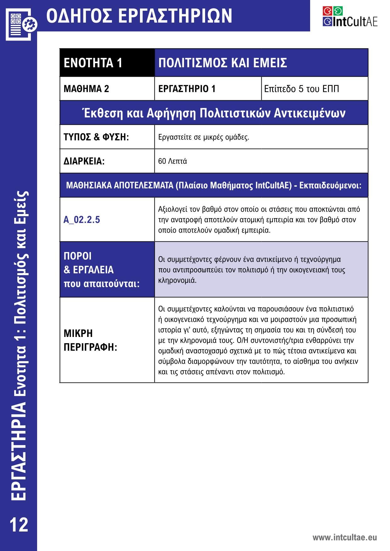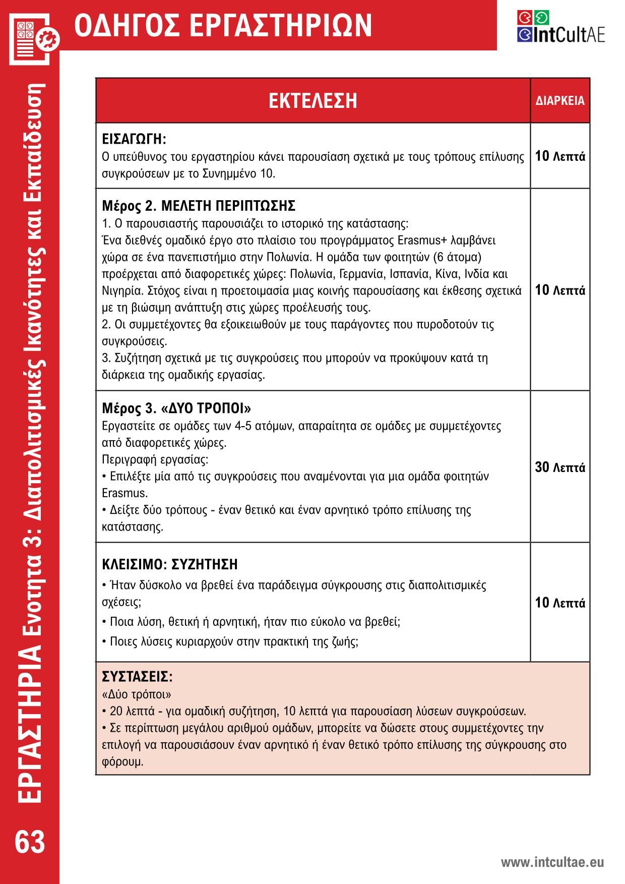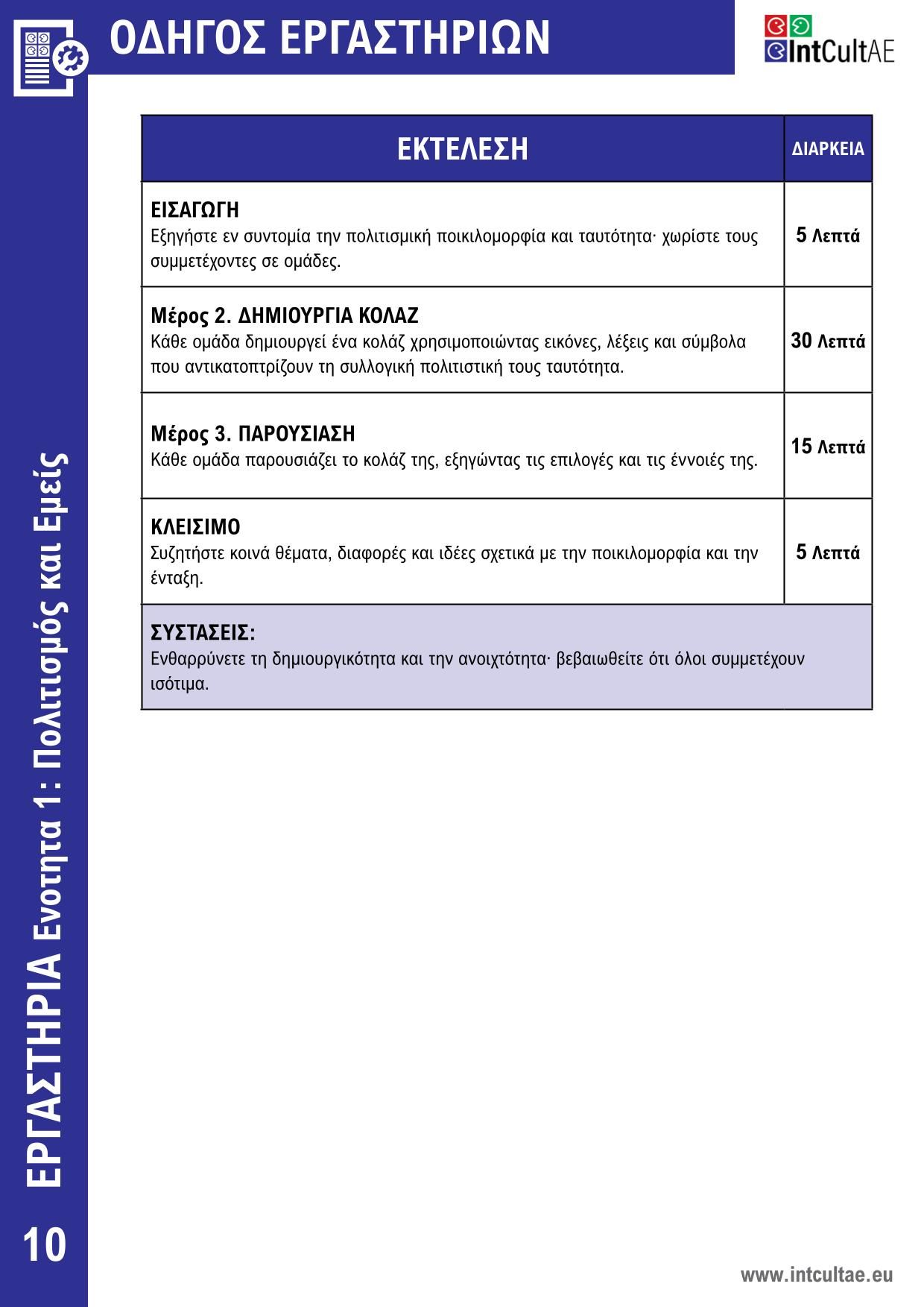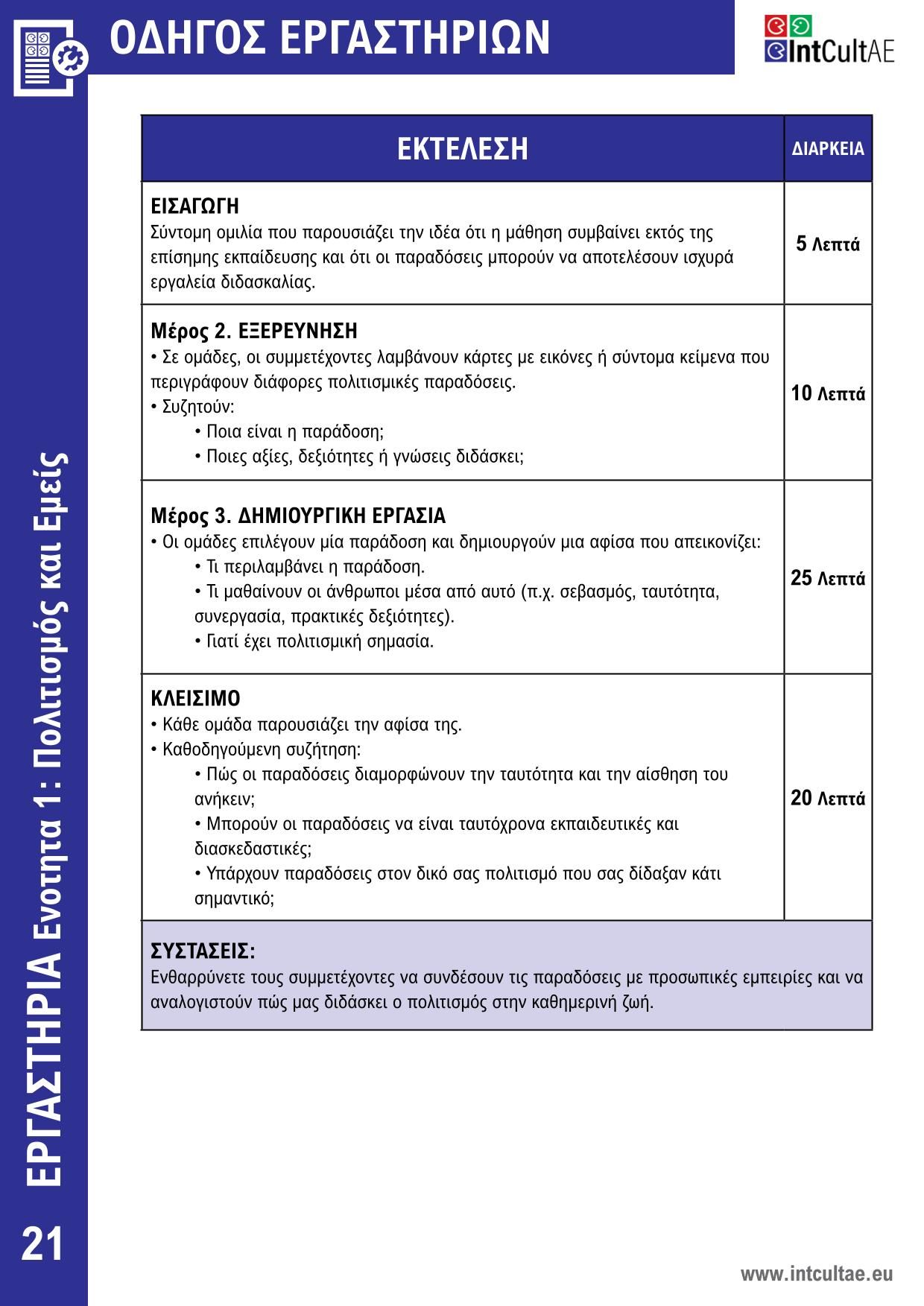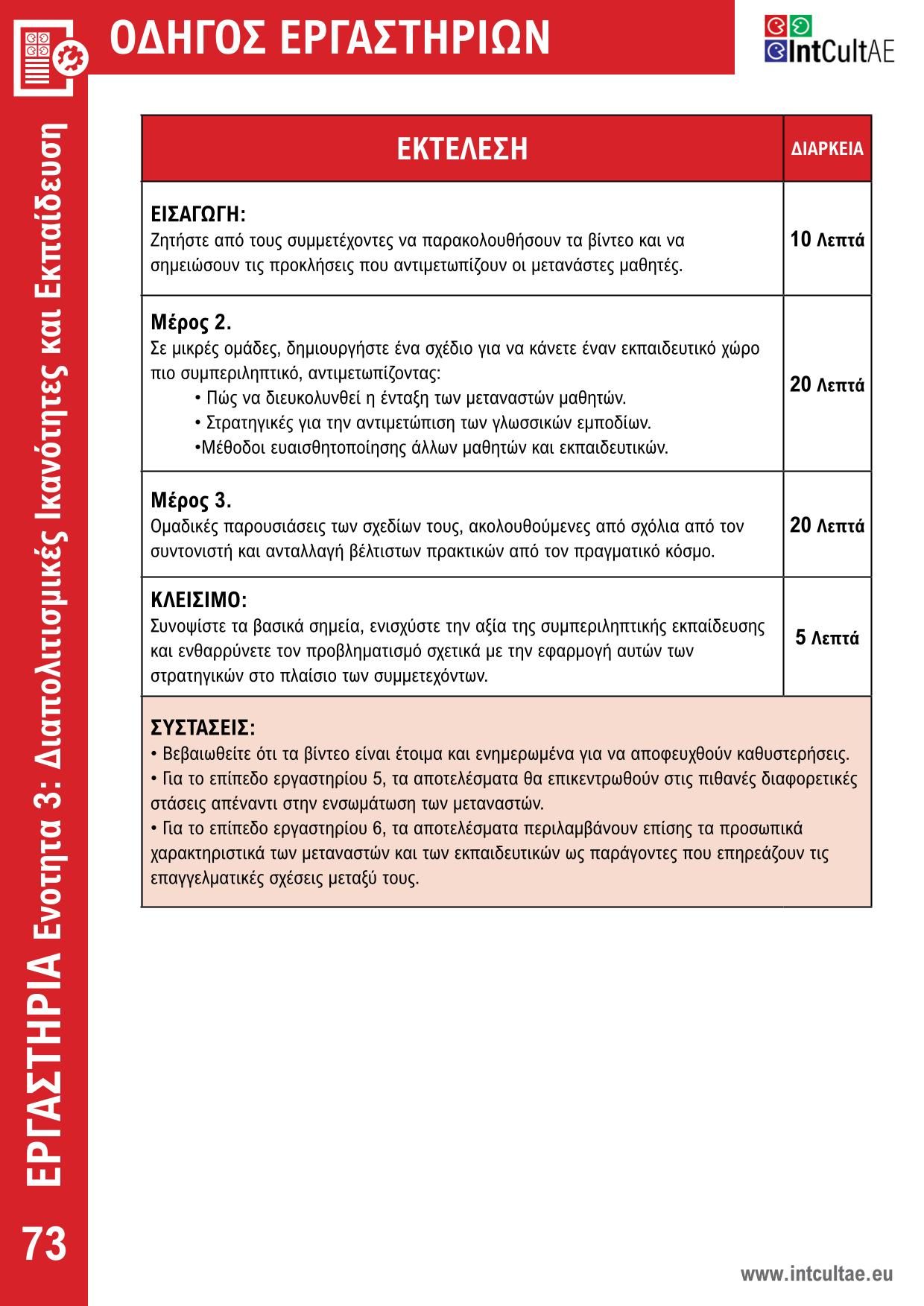 Κάθε ενότητα του διαδικτυακού μαθήματος μετατρέπεται σε ένα ξεχωριστό δια ζώσης εργαστήριο, όπως παρουσιάζεται στον οδηγό.