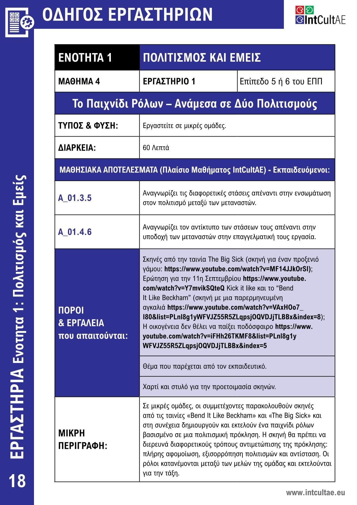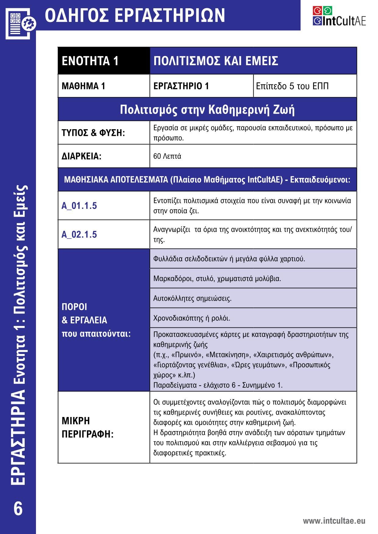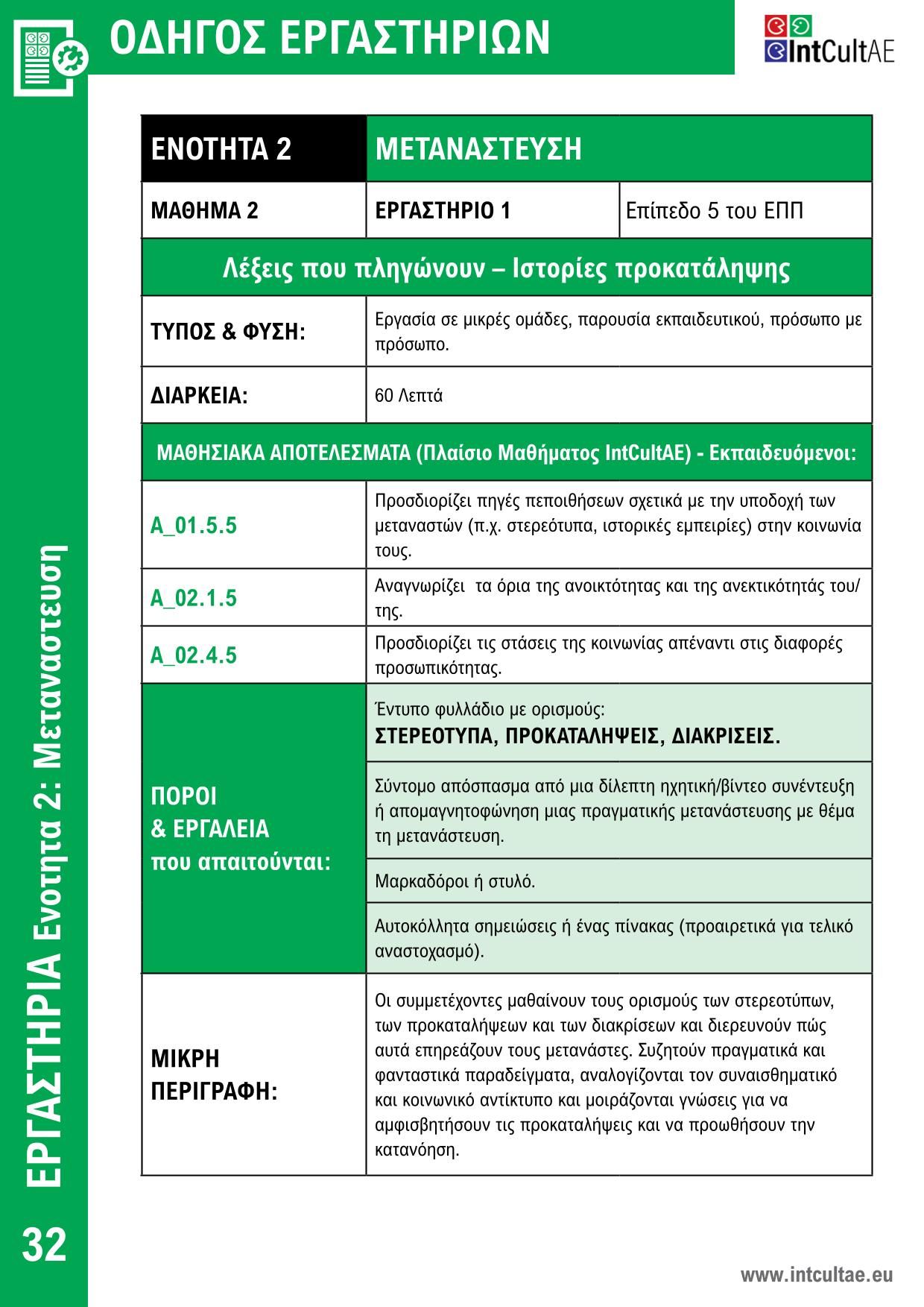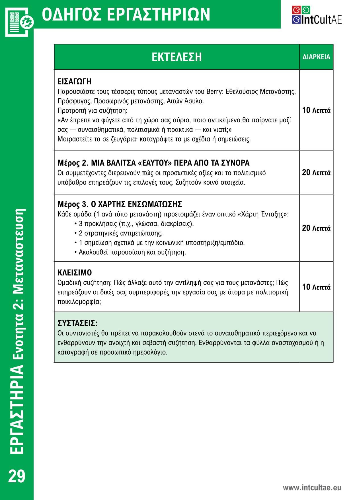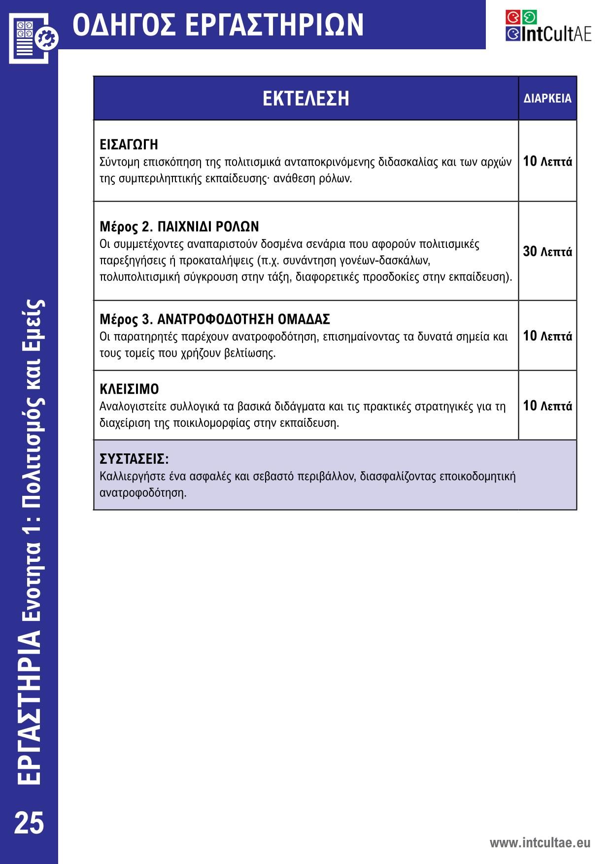 Κάθε ενότητα του διαδικτυακού μαθήματος μετατρέπεται σε ένα ξεχωριστό δια ζώσης εργαστήριο, όπως παρουσιάζεται στον οδηγό.