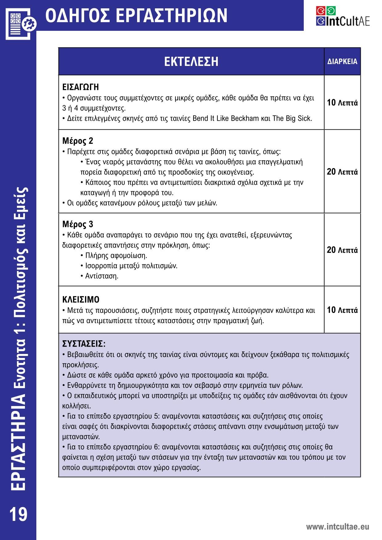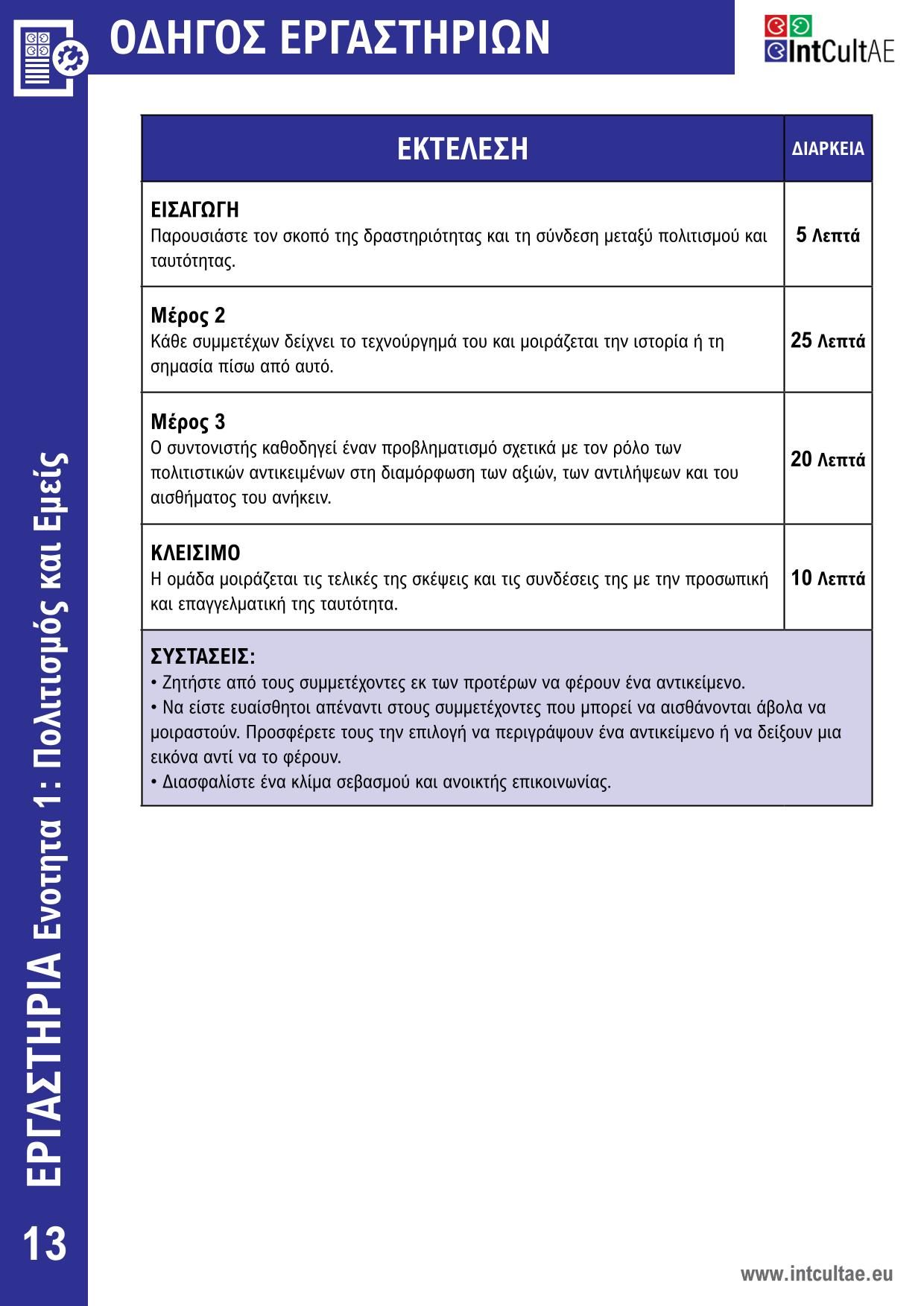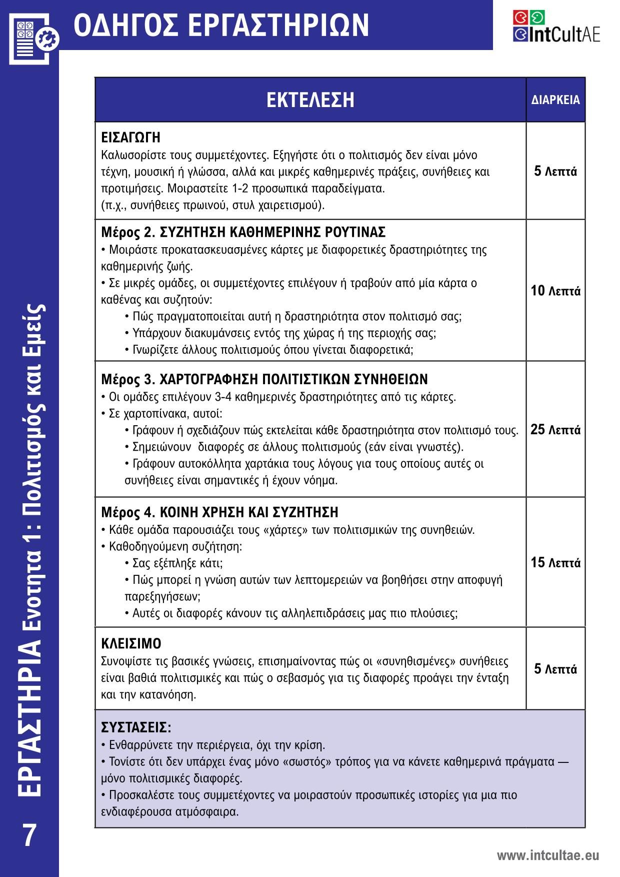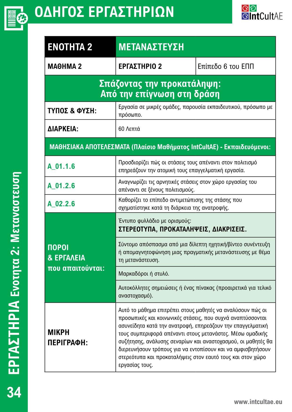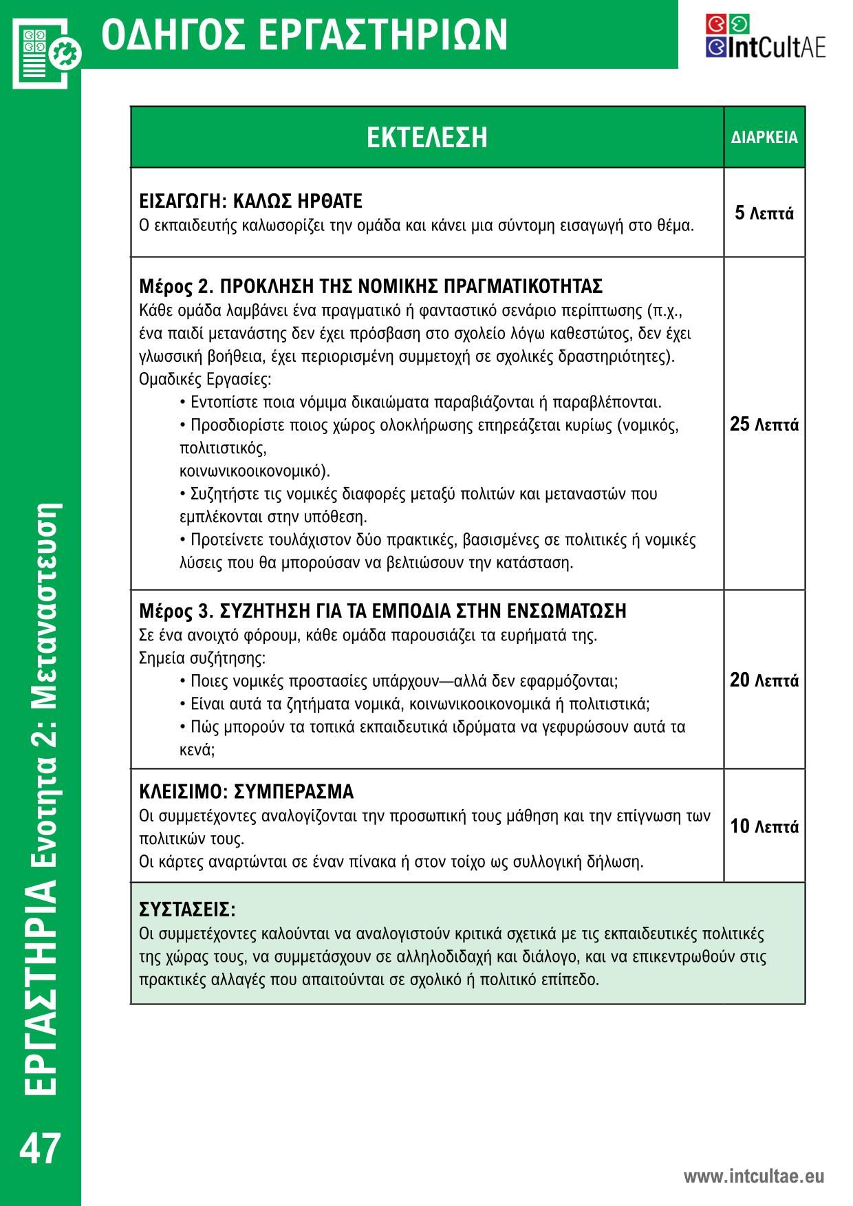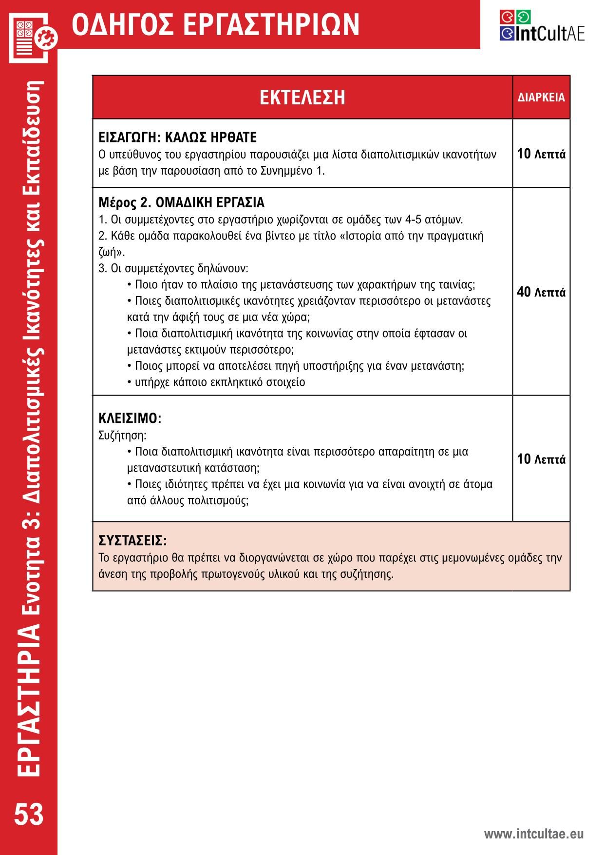 Κάθε ενότητα του διαδικτυακού μαθήματος μετατρέπεται σε ένα ξεχωριστό δια ζώσης εργαστήριο, όπως παρουσιάζεται στον οδηγό.