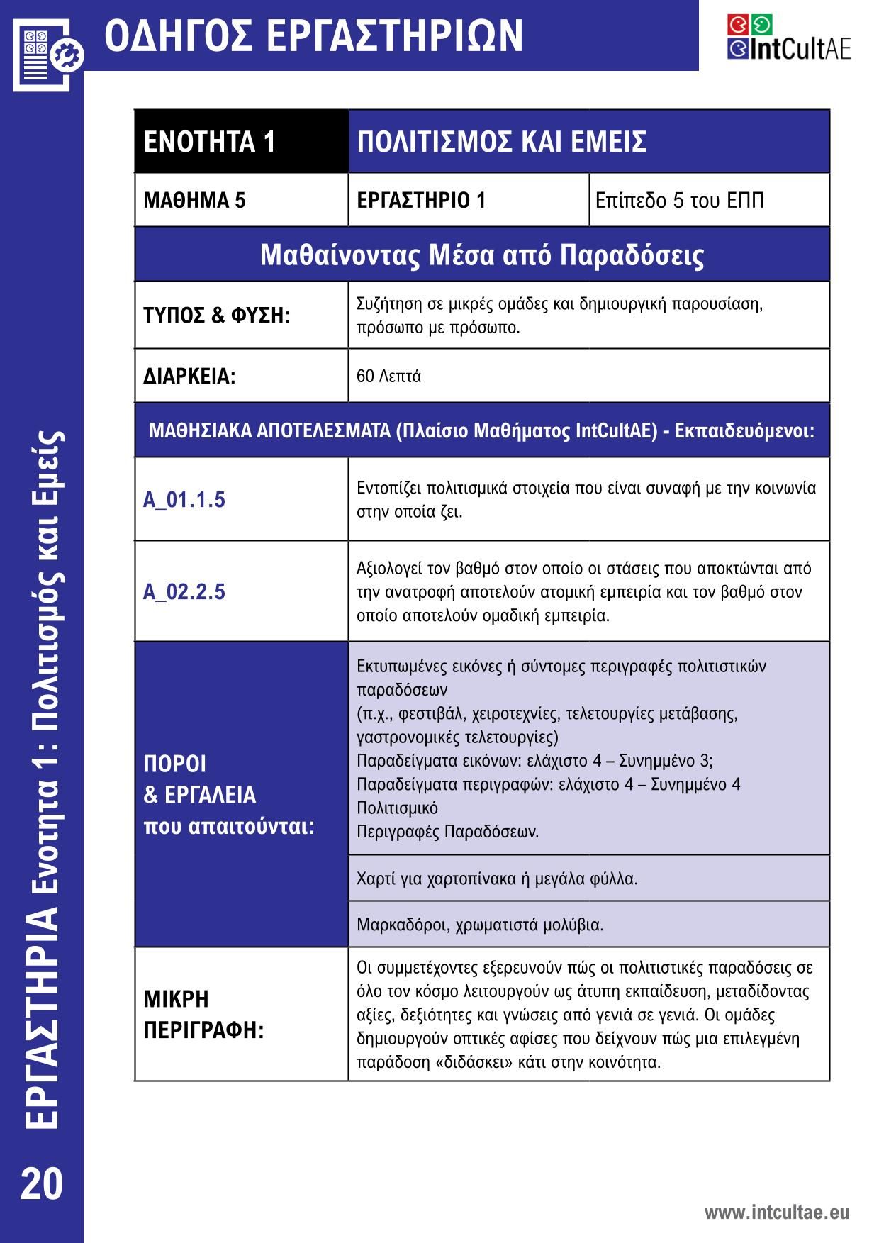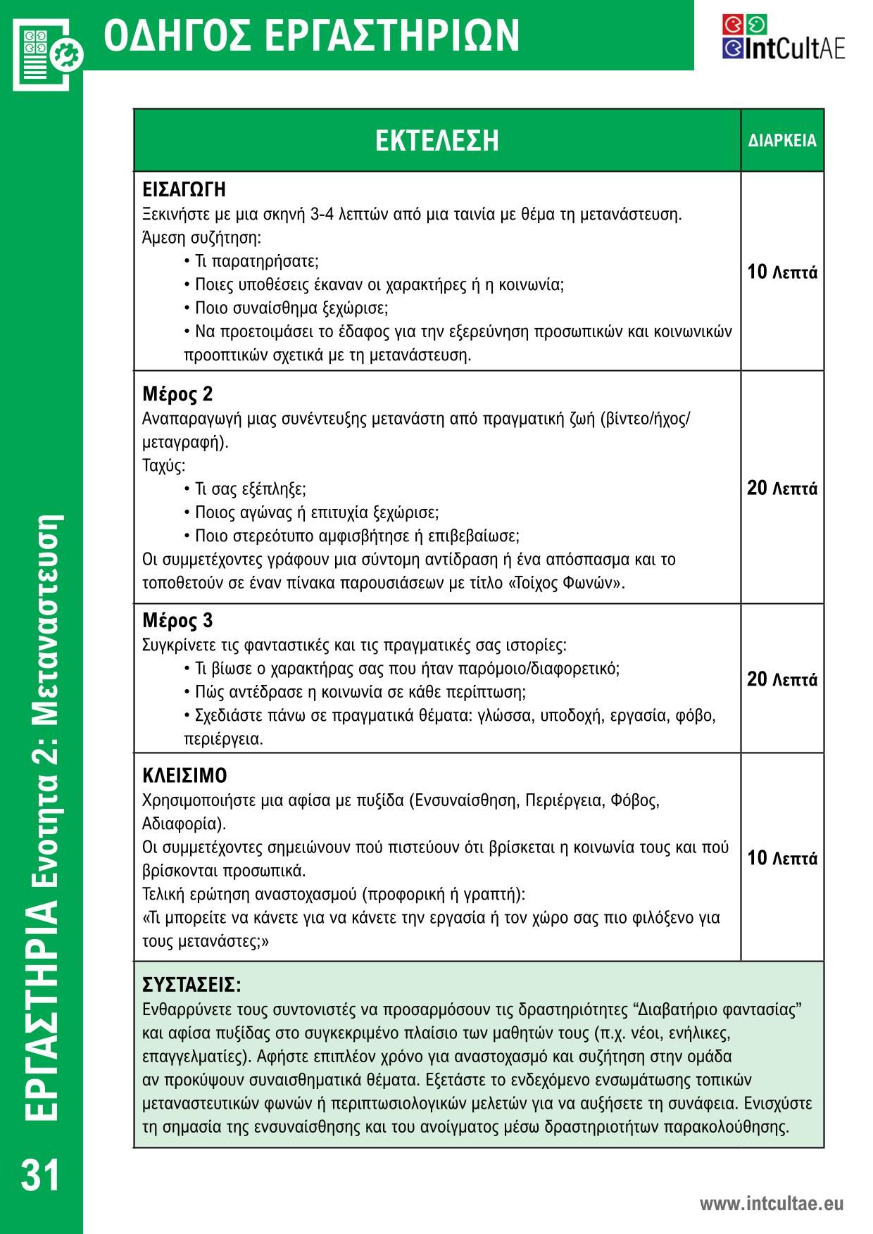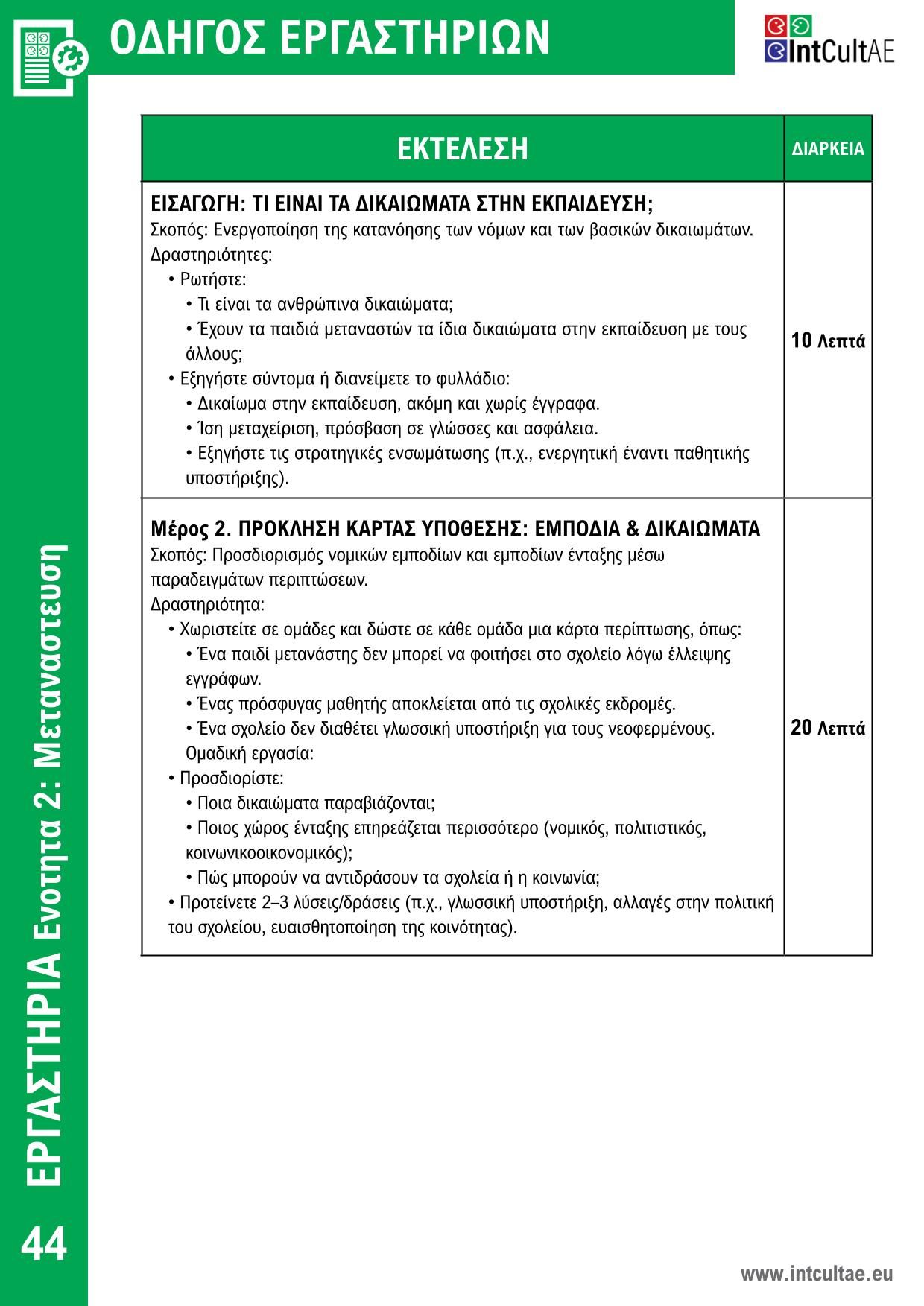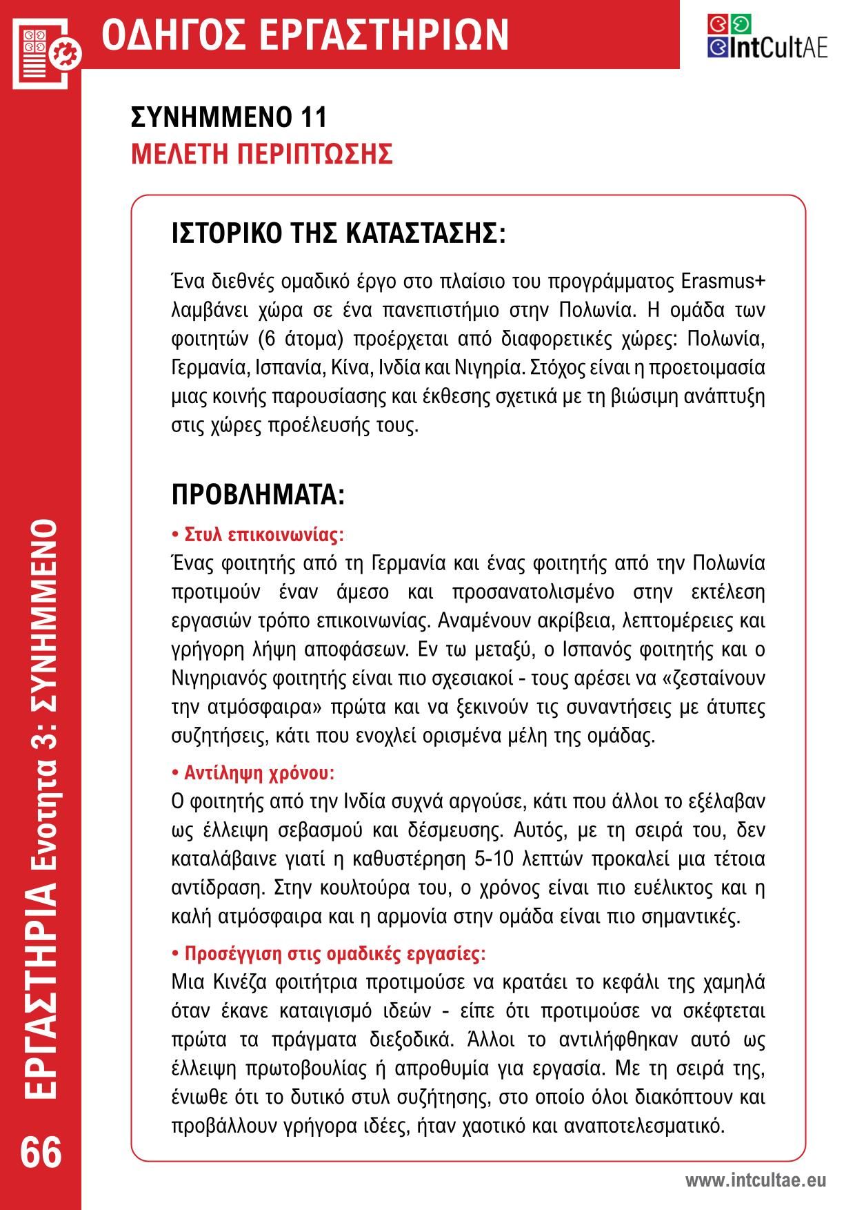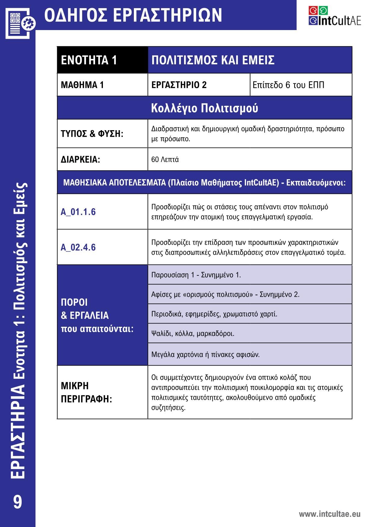 Κάθε ενότητα του διαδικτυακού μαθήματος μετατρέπεται σε ένα ξεχωριστό δια ζώσης εργαστήριο, όπως παρουσιάζεται στον οδηγό.
