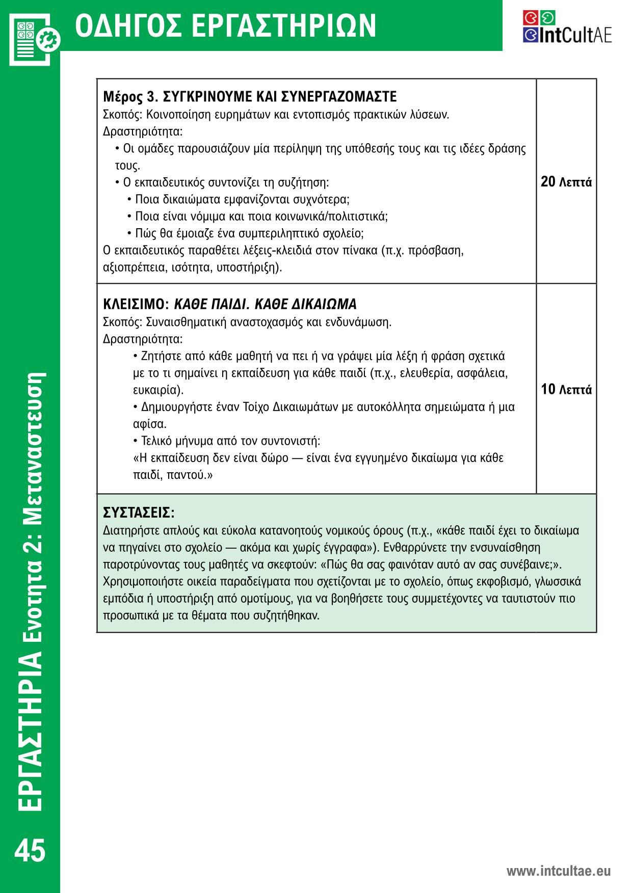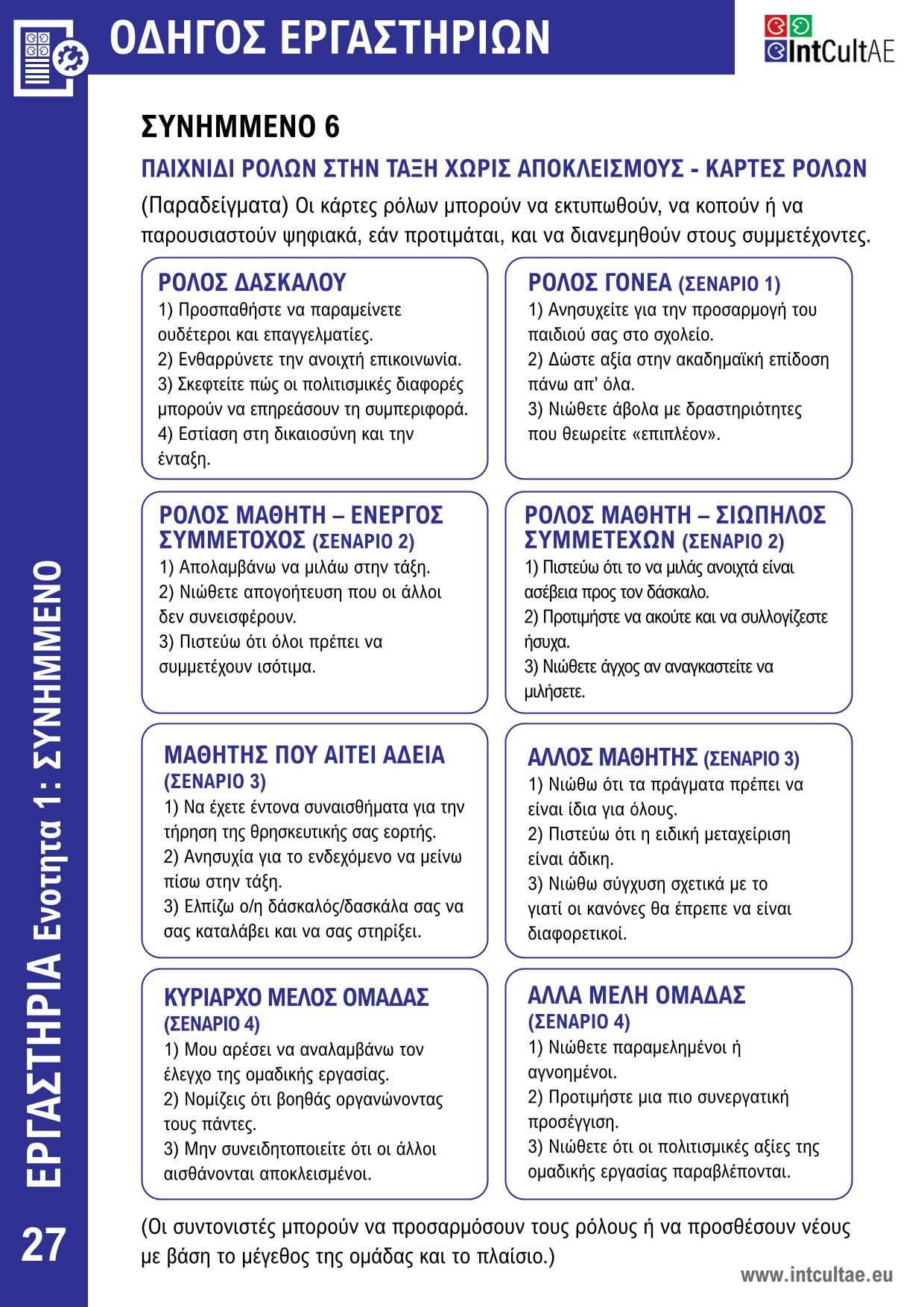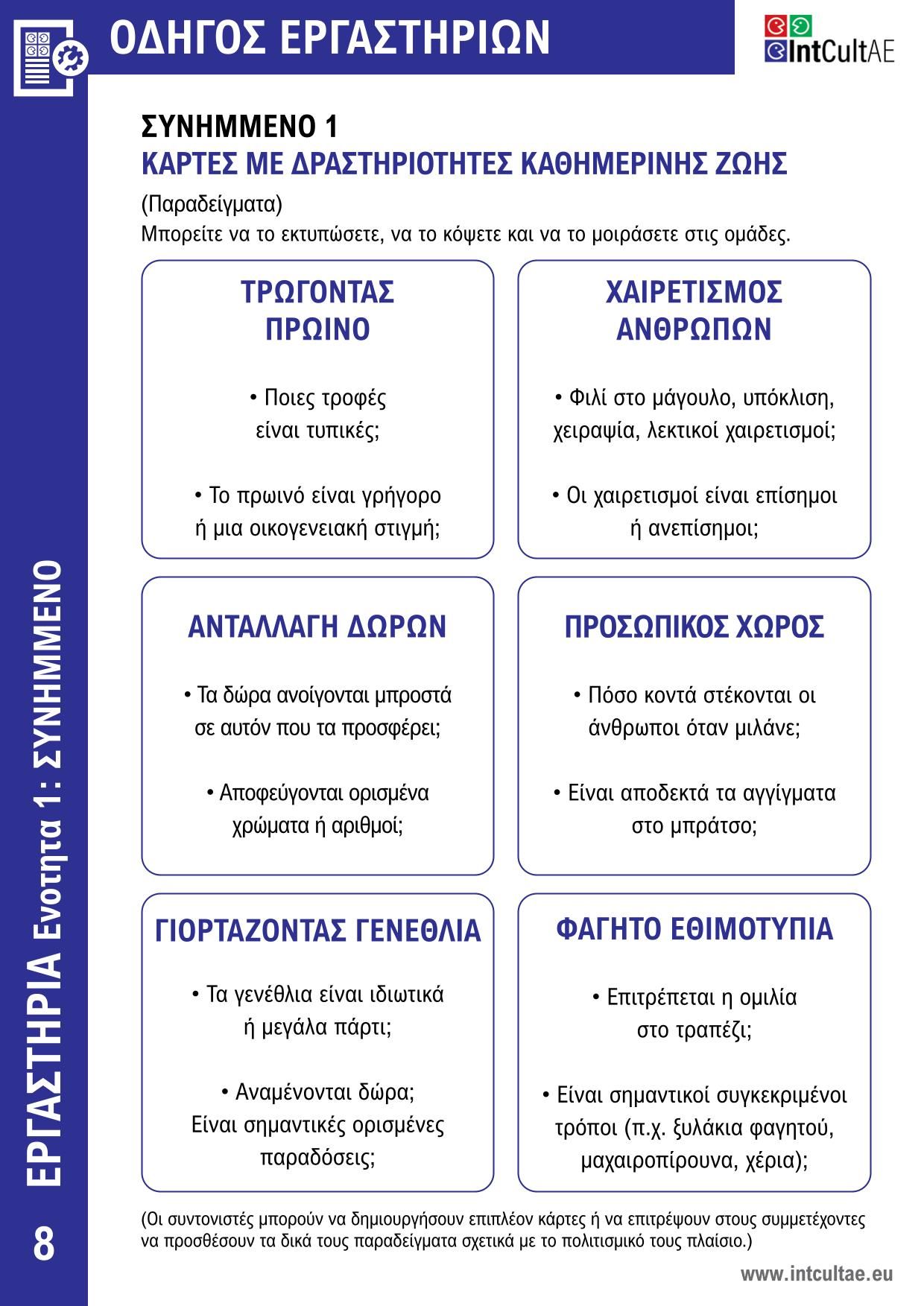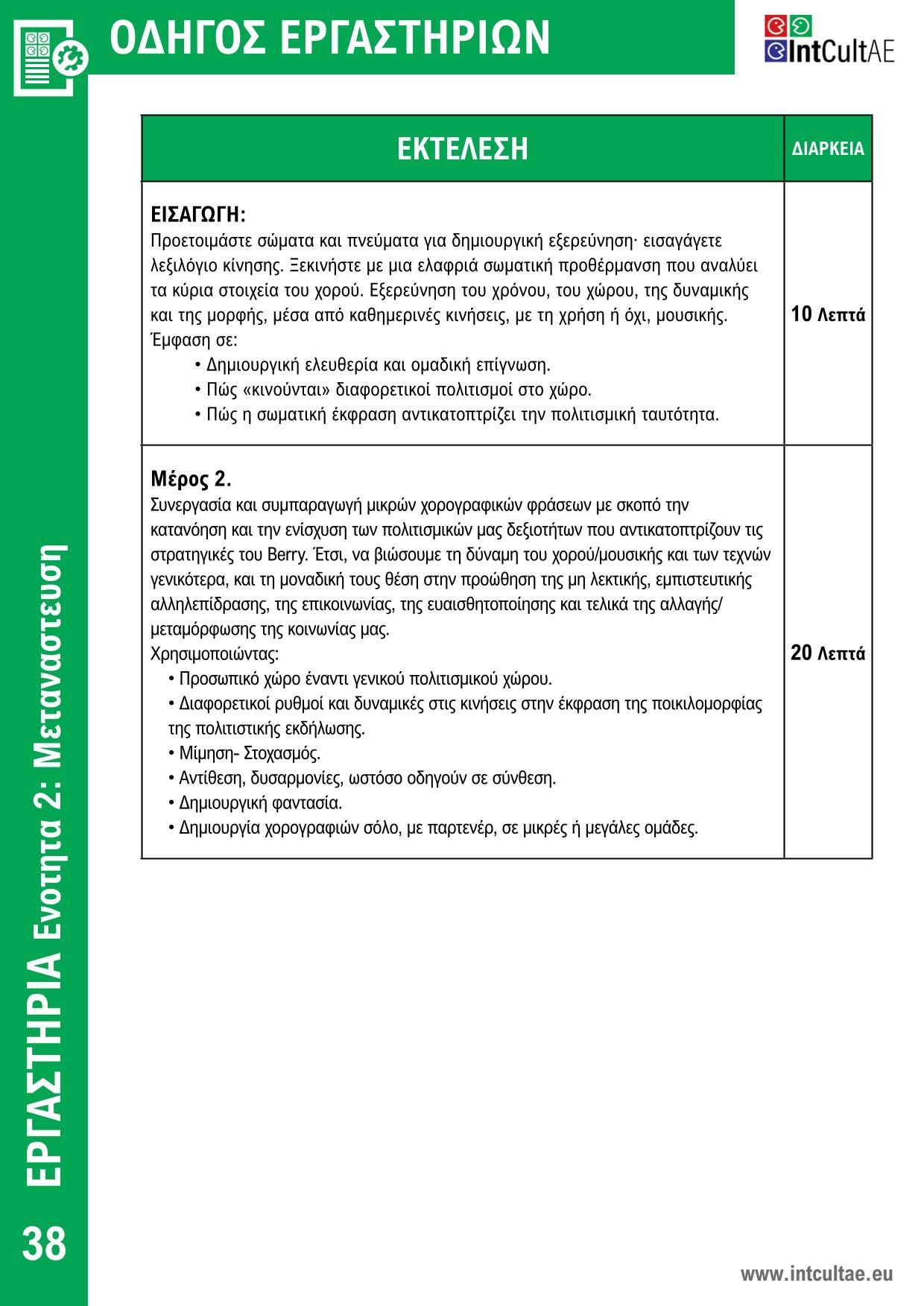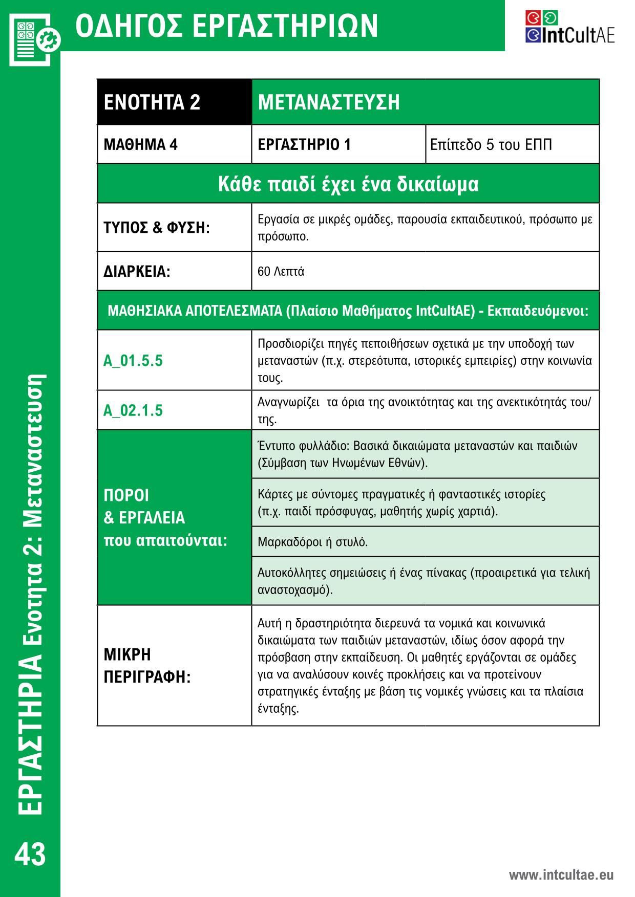 Κάθε ενότητα του διαδικτυακού μαθήματος μετατρέπεται σε ένα ξεχωριστό δια ζώσης εργαστήριο, όπως παρουσιάζεται στον οδηγό.