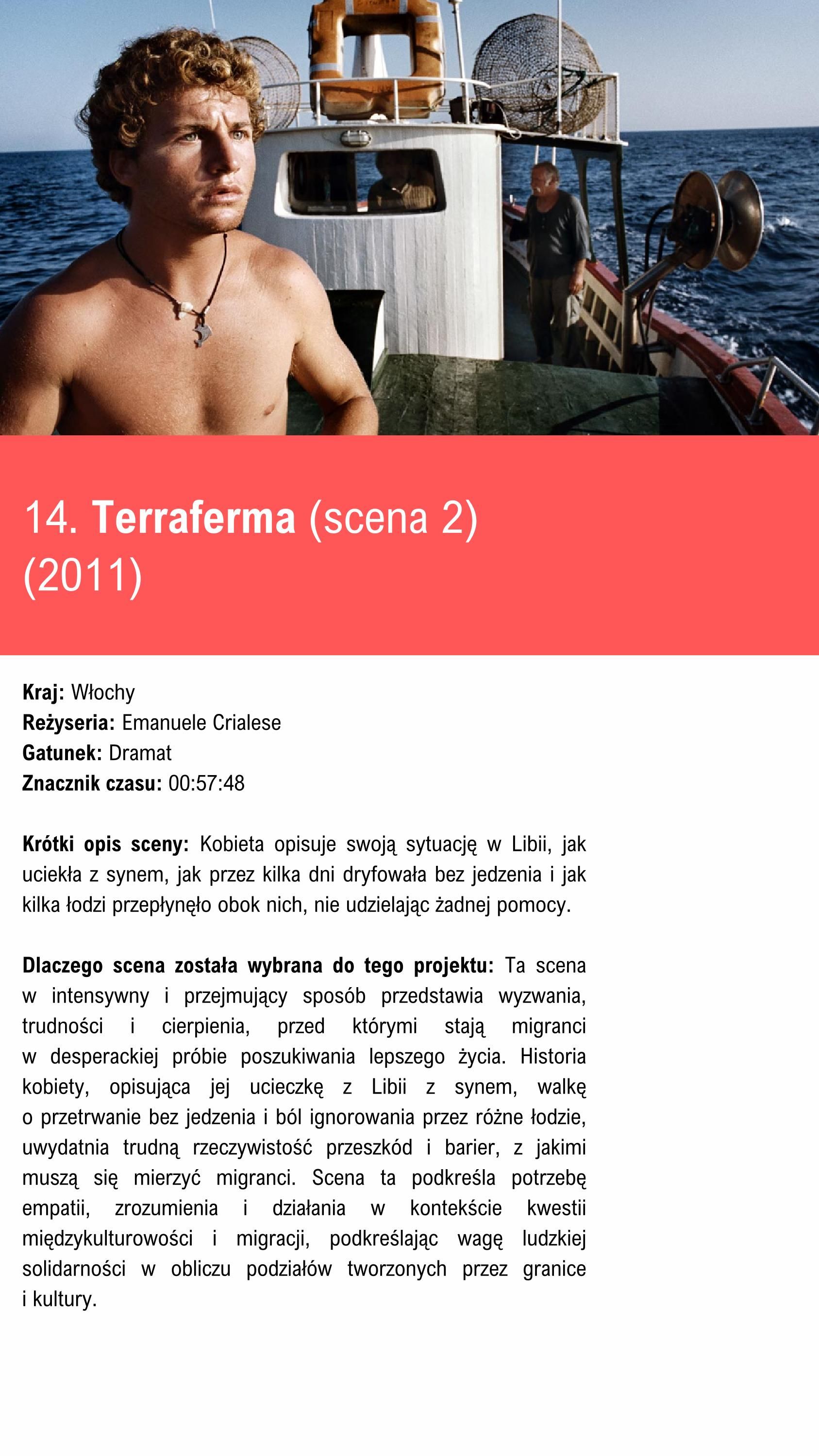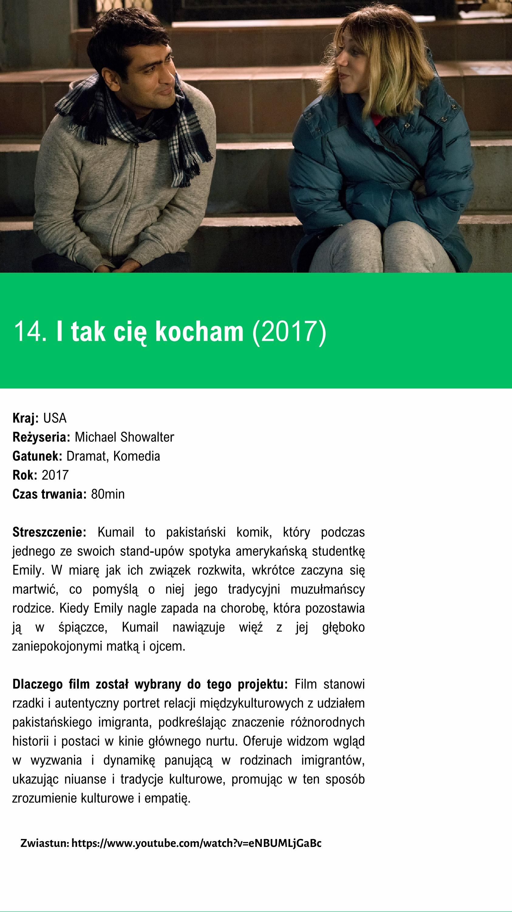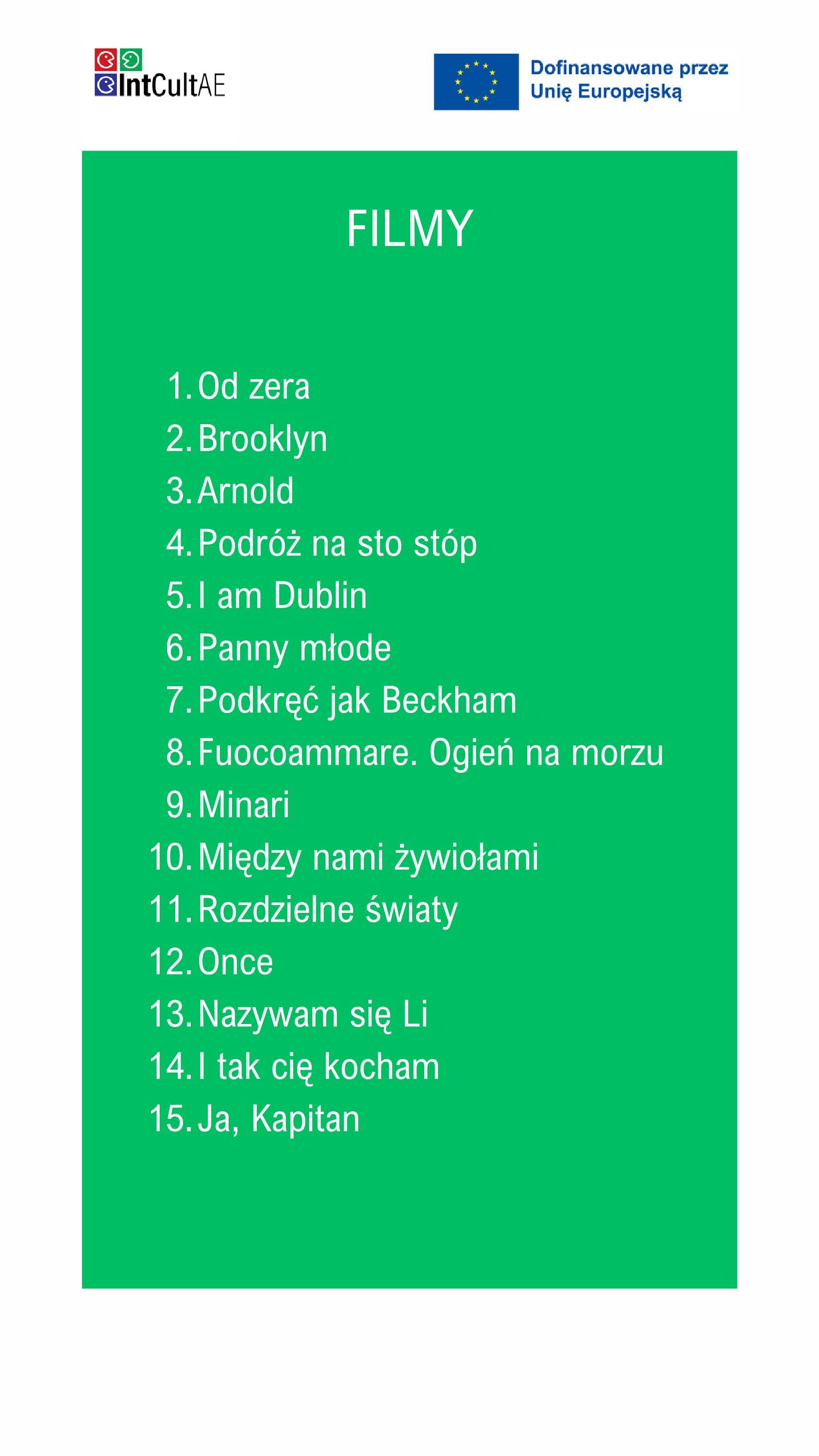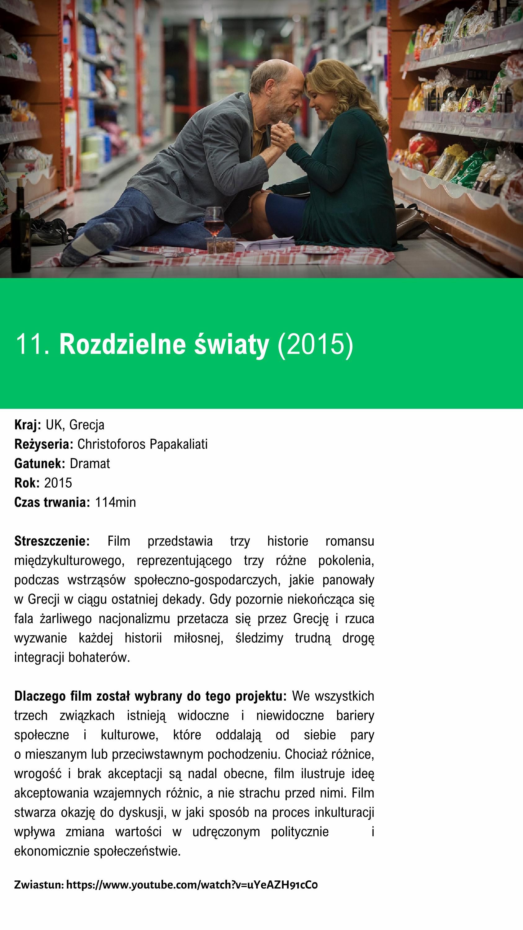 Katalog "Kompetencje międzykulturowe przez filmy i sceny" został stworzony w celu zaprezentowania wartościowych przykładów kompetencji międzykulturowych w działaniu, podczas kontaktów międzykulturowych oraz ich szczegółowej analizy. Inicjatywa ta ma na celu wykorzystanie atrakcyjności mediów wizualnych do zakotwiczenia w interaktywny i angażujący sposób odpowiednich koncepcji. Katalog zawiera 15 filmów (lub seriali w odcinkach) i 15 scen, wybranych w celu zilustrowania różnych aspektów kompetencji międzykulturowych.