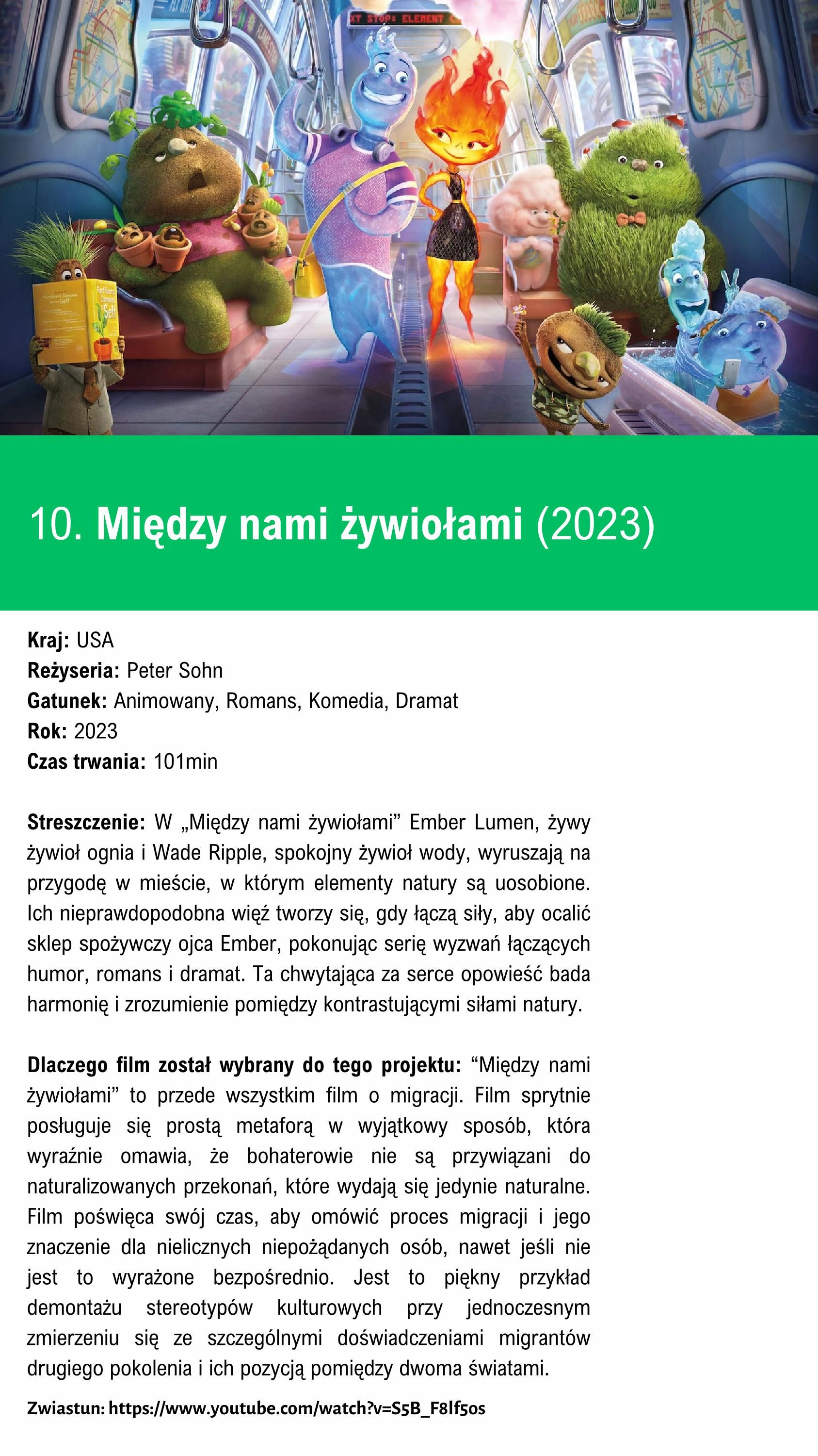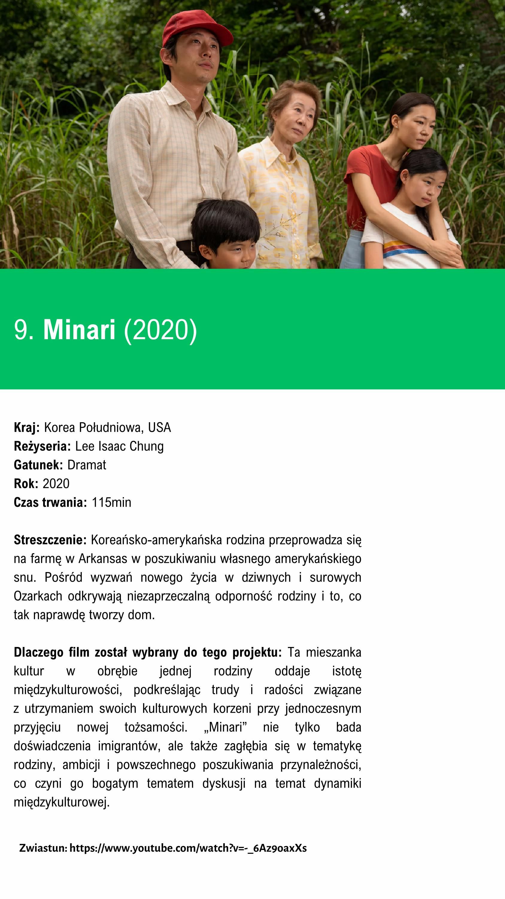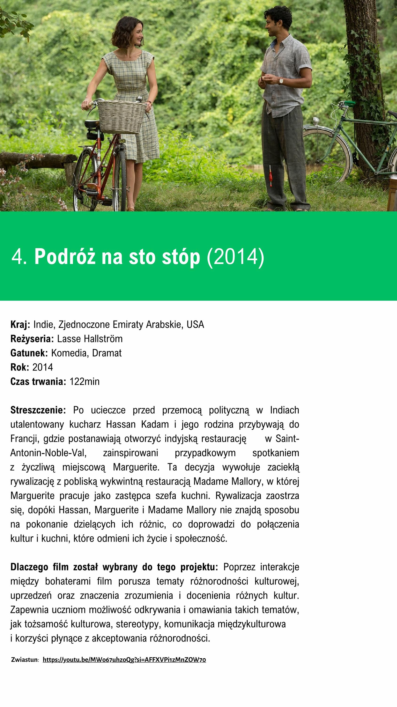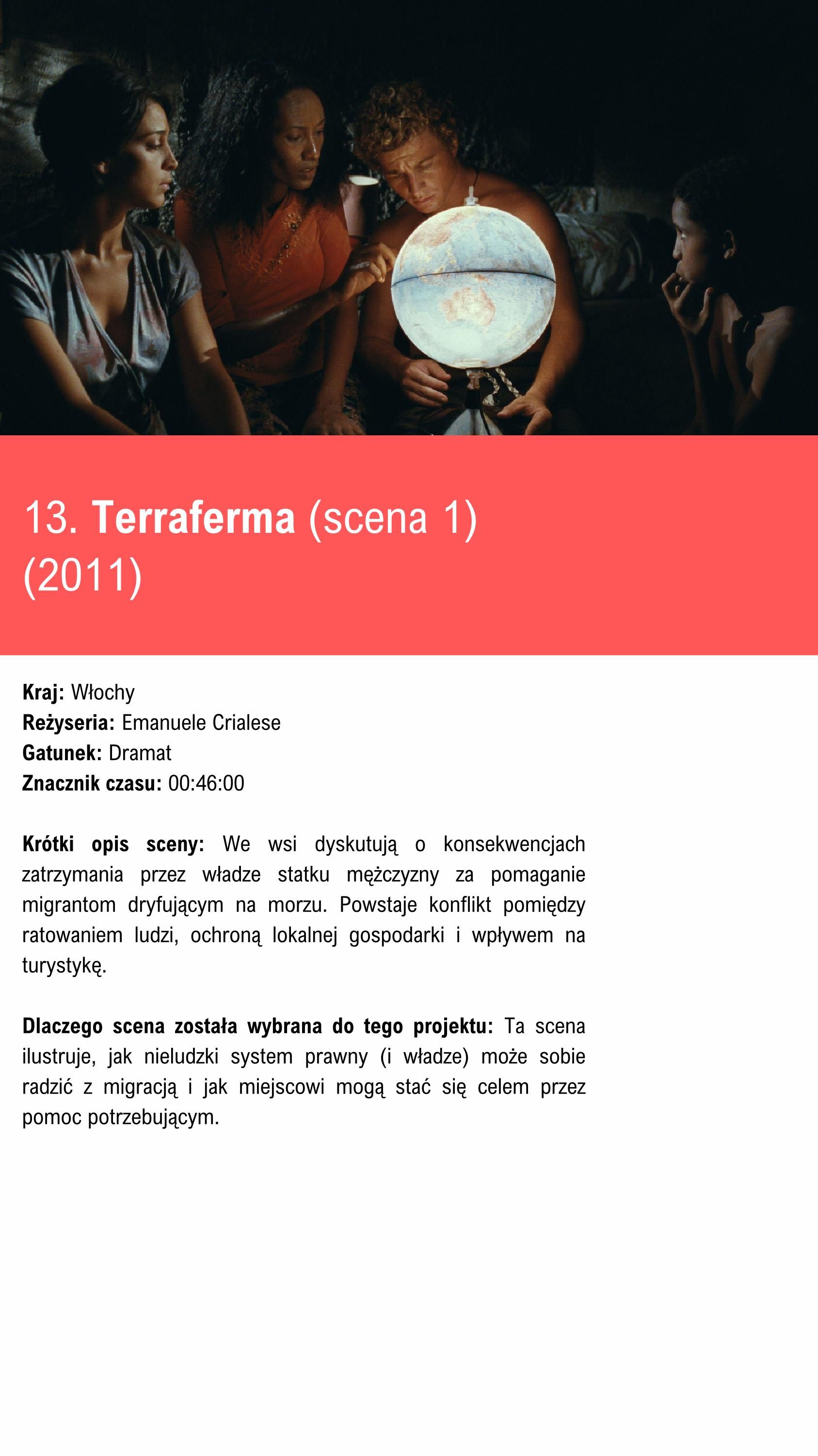 Katalog "Kompetencje międzykulturowe przez filmy i sceny" został stworzony w celu zaprezentowania wartościowych przykładów kompetencji międzykulturowych w działaniu, podczas kontaktów międzykulturowych oraz ich szczegółowej analizy. Inicjatywa ta ma na celu wykorzystanie atrakcyjności mediów wizualnych do zakotwiczenia w interaktywny i angażujący sposób odpowiednich koncepcji. Katalog zawiera 15 filmów (lub seriali w odcinkach) i 15 scen, wybranych w celu zilustrowania różnych aspektów kompetencji międzykulturowych.