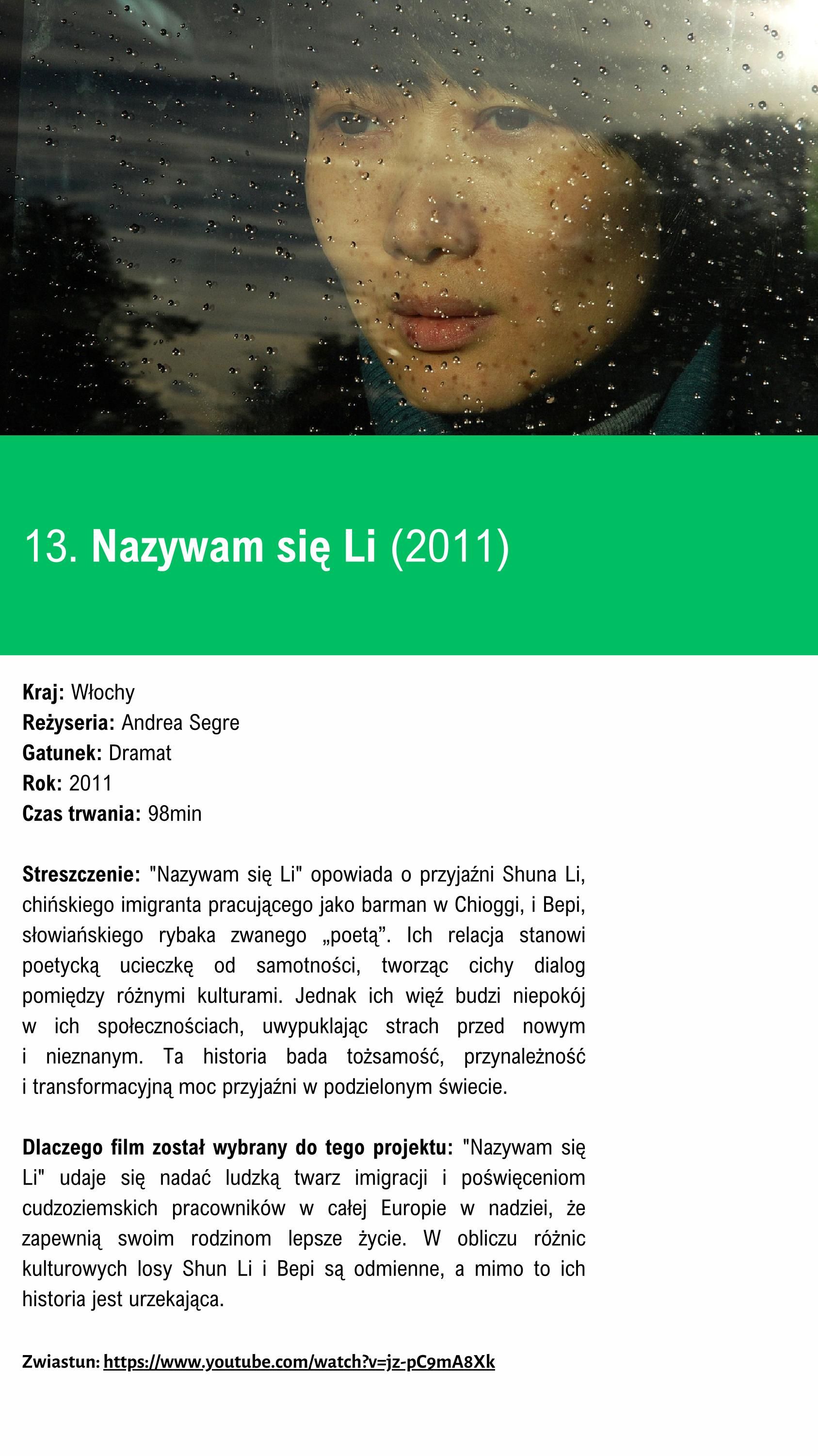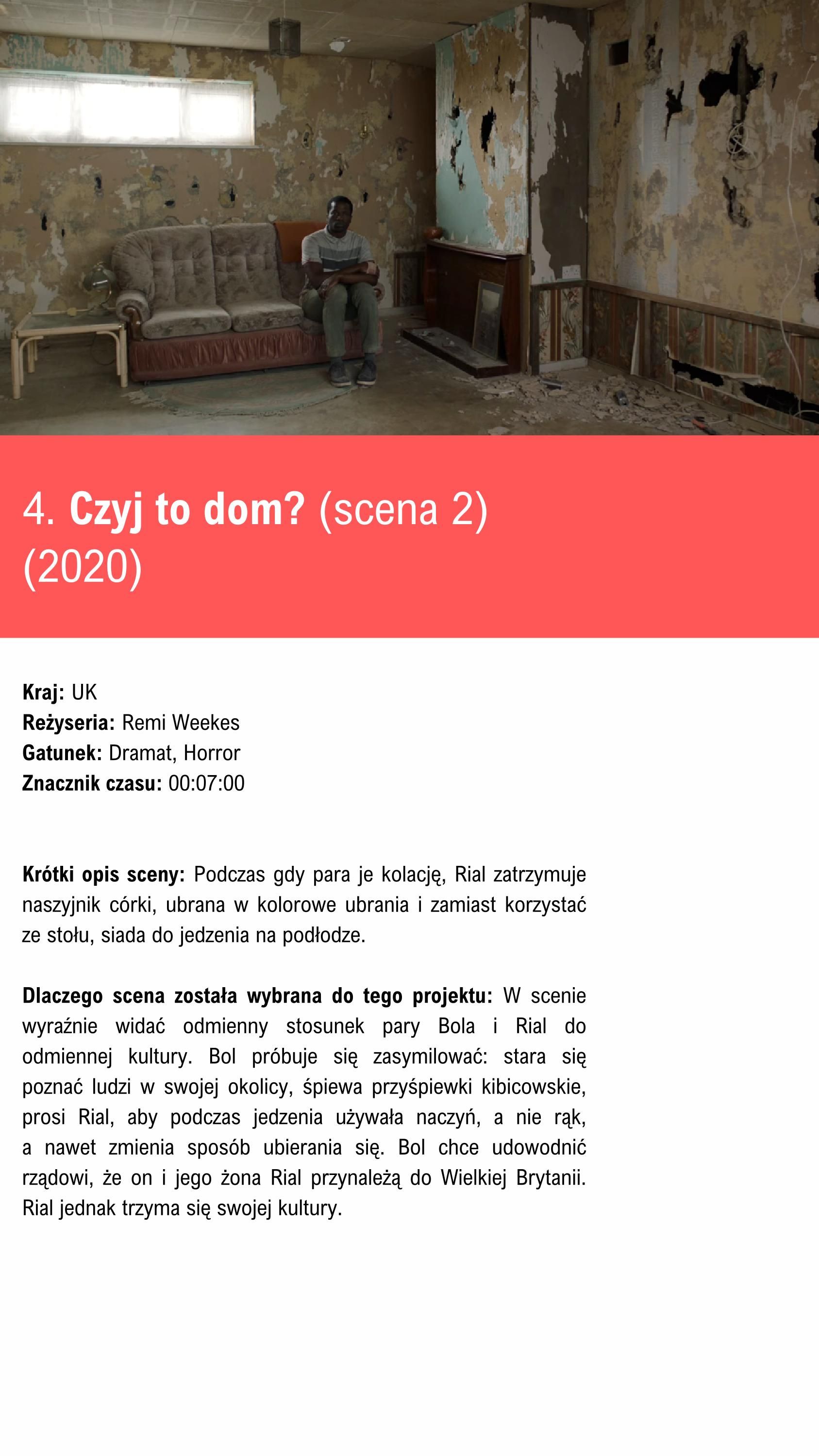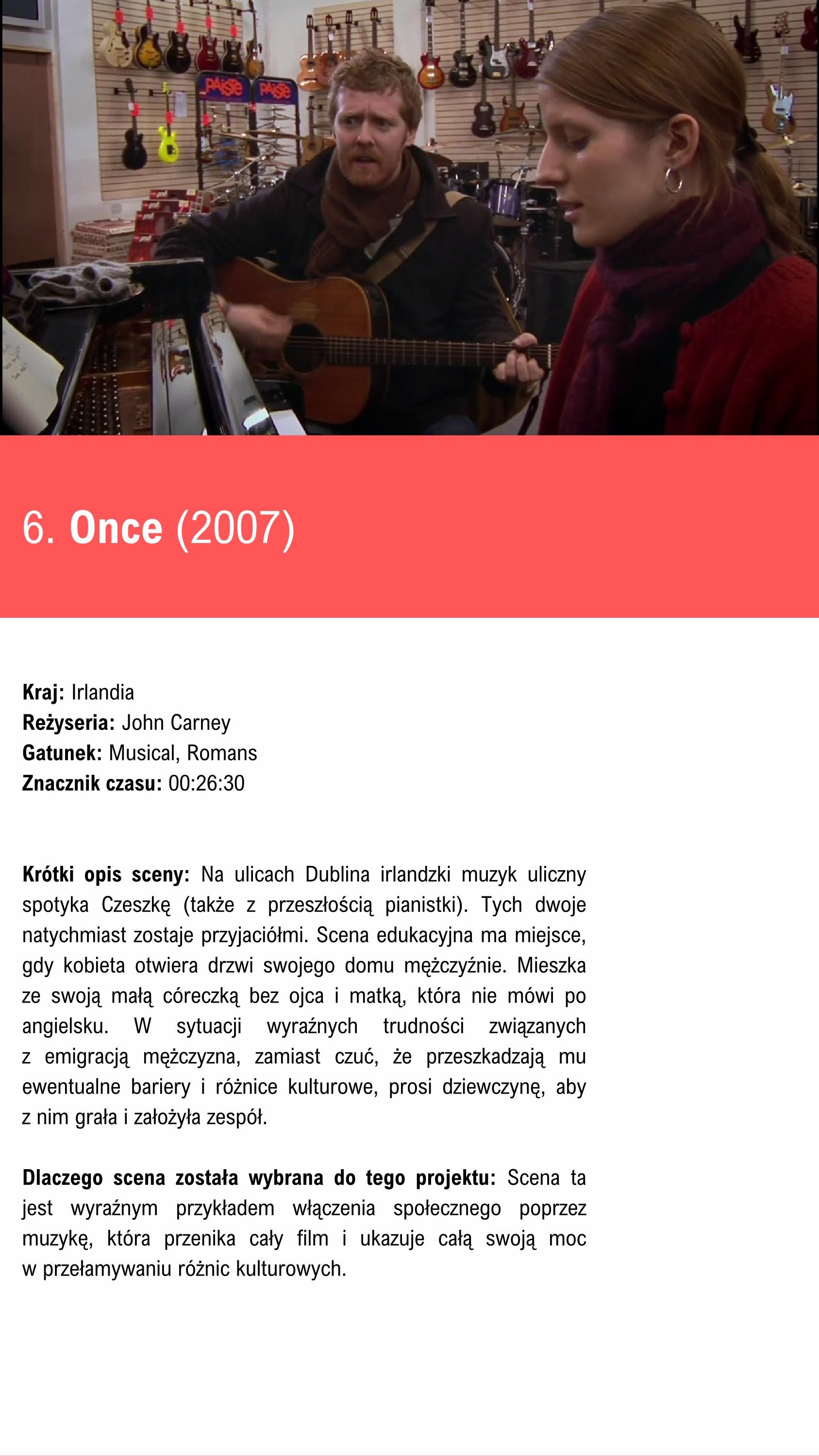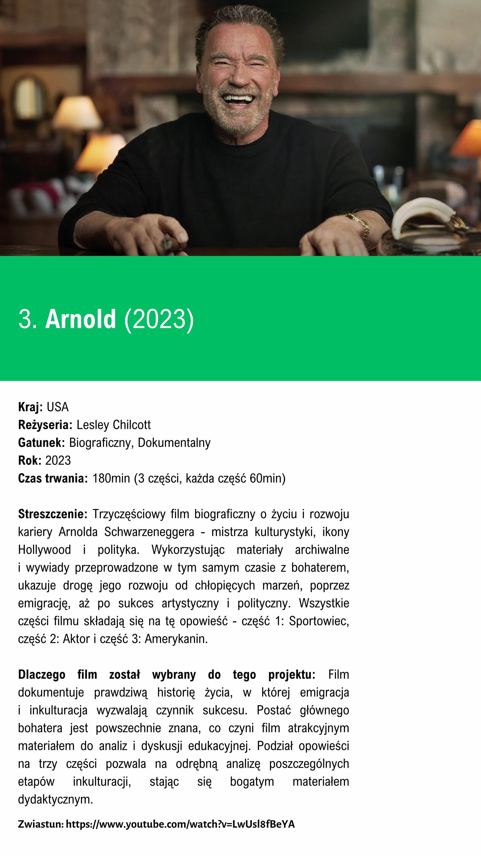 Katalog "Kompetencje międzykulturowe przez filmy i sceny" został stworzony w celu zaprezentowania wartościowych przykładów kompetencji międzykulturowych w działaniu, podczas kontaktów międzykulturowych oraz ich szczegółowej analizy. Inicjatywa ta ma na celu wykorzystanie atrakcyjności mediów wizualnych do zakotwiczenia w interaktywny i angażujący sposób odpowiednich koncepcji. Katalog zawiera 15 filmów (lub seriali w odcinkach) i 15 scen, wybranych w celu zilustrowania różnych aspektów kompetencji międzykulturowych.