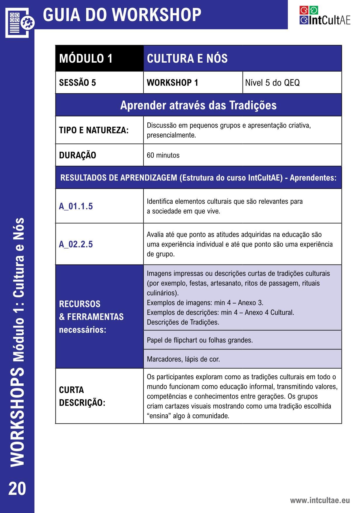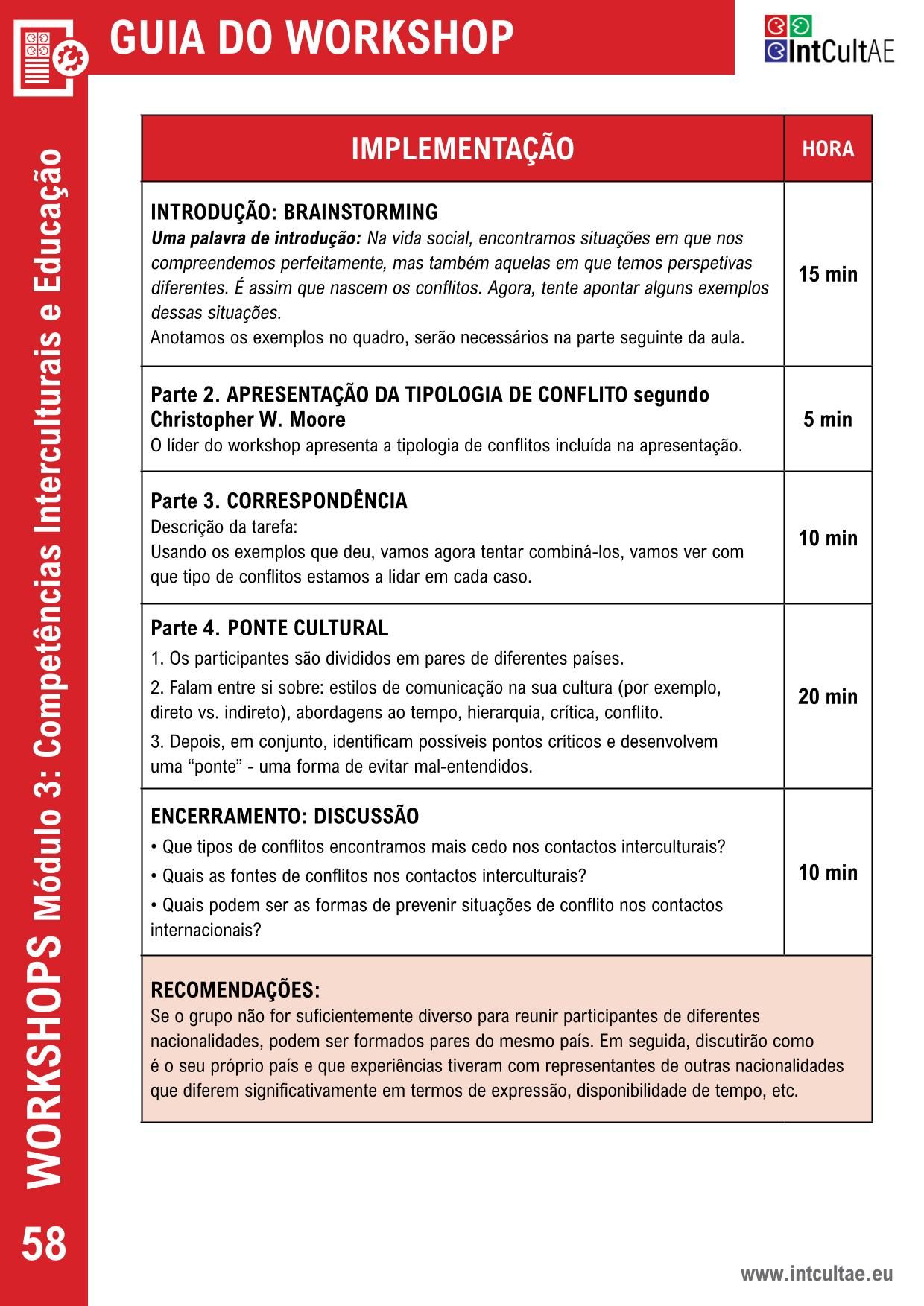Cada módulo do curso online é transposto para um workshop individual presencial, apresentado no guia.